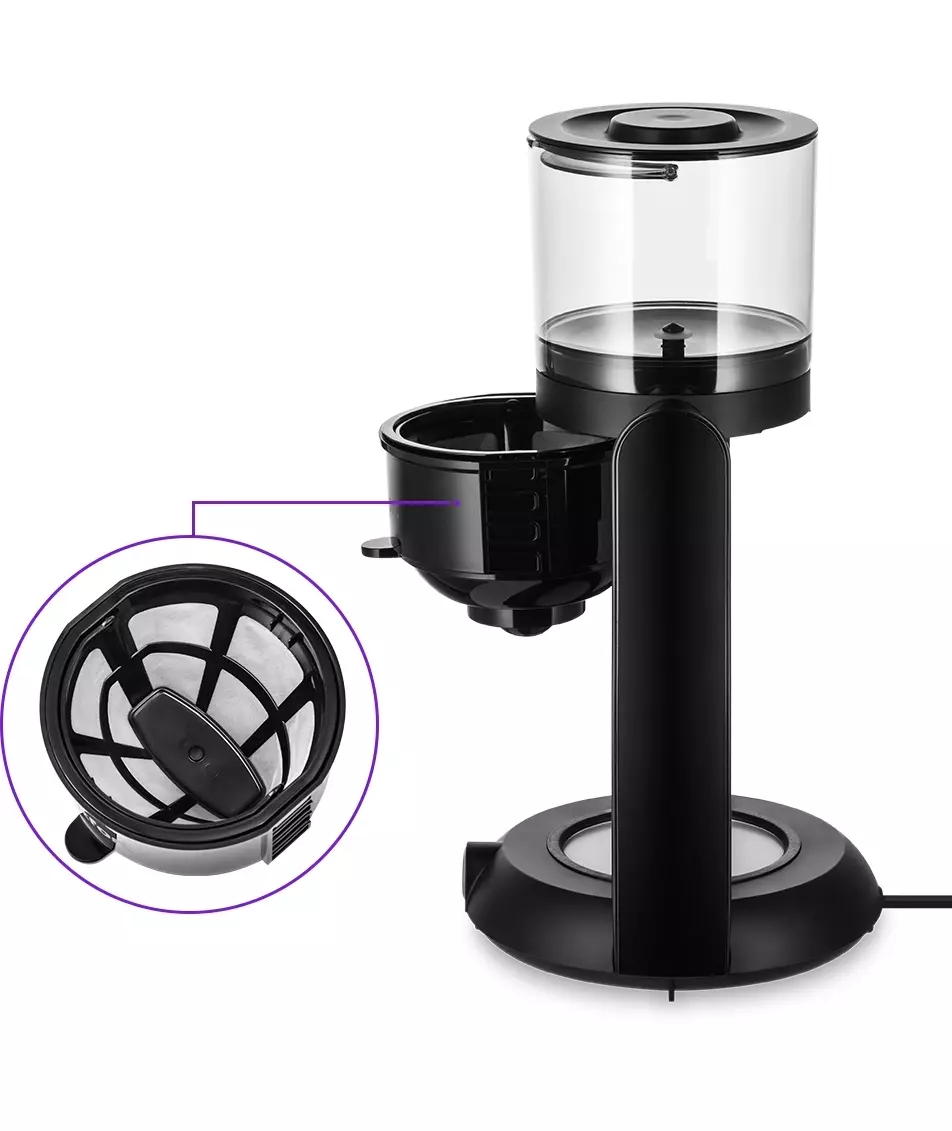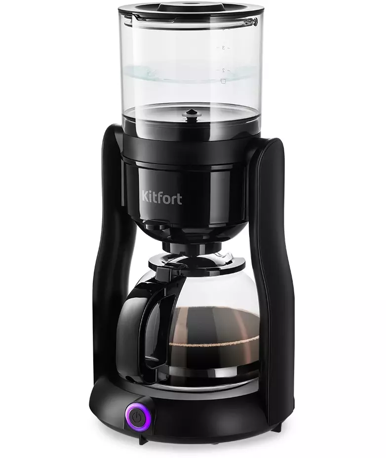 Капельная кофеварка Kitfort КТ-7136 готовит ароматный кофе одним нажатием кнопки. Прибор небольшой по размеру. Устройство полностью разборное и занимает мало места, очень удобно для хранения.