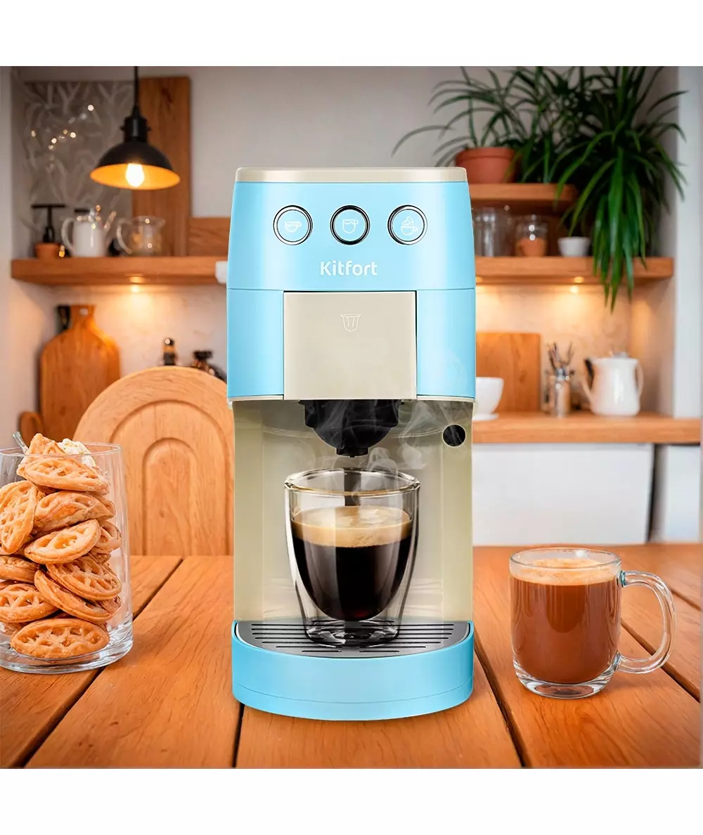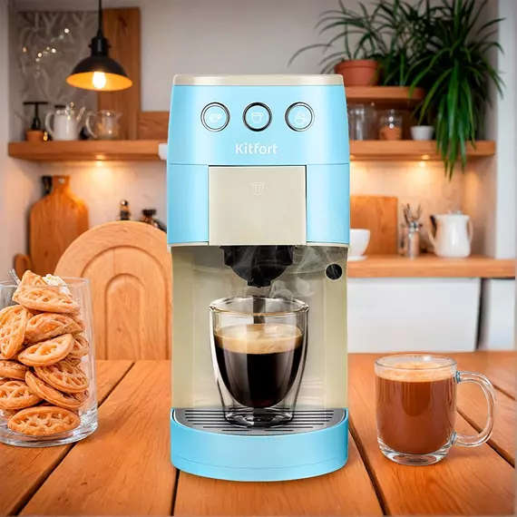 Кофеварка рожковая Kitfort КТ-7466 1450Вт голубой/белый