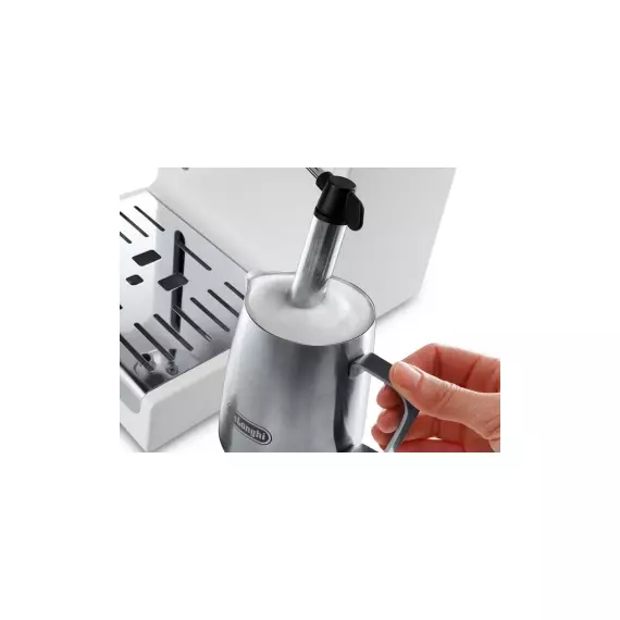 - Дополнительно: Регулировка подачи пара, максимальная высота чашки 13 см, съемный резервуар для воды, съемный поддон для капель, удобная система хранения аксессуаров
