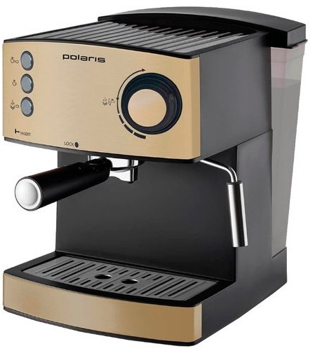 Кофеварка мощностью 850 Вт с возможностью подачи напитка сразу на две чашки.