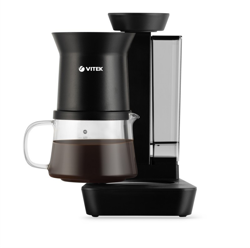 - Начинать каждый день с любимого бодрящего напитка позволит кофеварка VITEK VT-8381. Максимальная мощность устройства — 750 Вт. Прибор работает как классическая капельная кофеварка, но, по желанию, вы можете использовать ее дополнительную функцию и готовить напитки методом «пуровер»