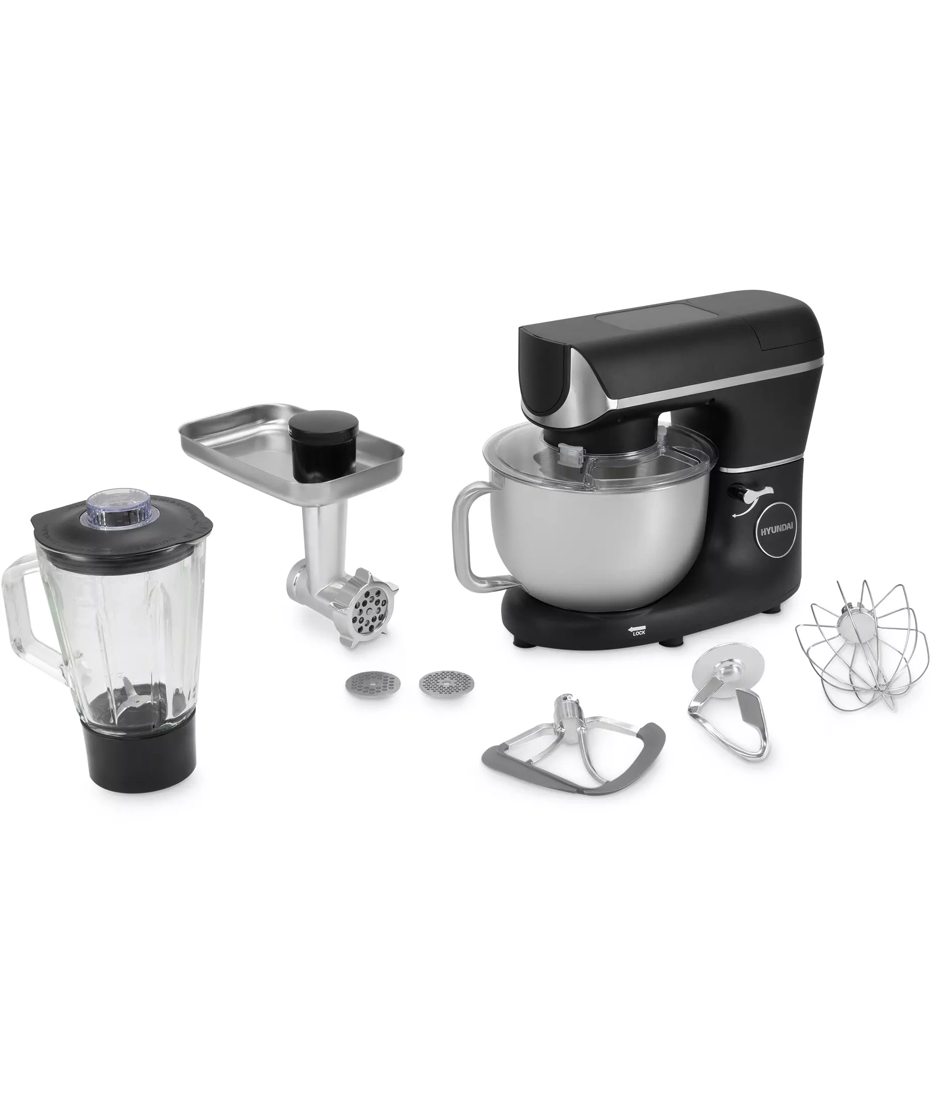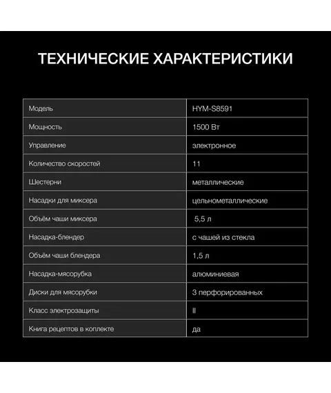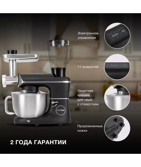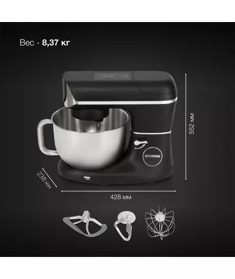 Кухонная машина Hyundai HYM-S8591 планетар.вращ. 1500Вт черный/серебристый