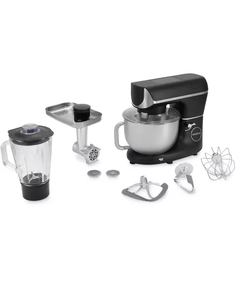 | Комплектация | кухонная машина; чаша; защитная крышка для чаши; насадка-венчик; насадка-крюк; насадка-лопатка; насадка-блендер; насадка-мясорубка; 3 диска для фраша; книга рецептов; инструкция с гарантийным талоном |
