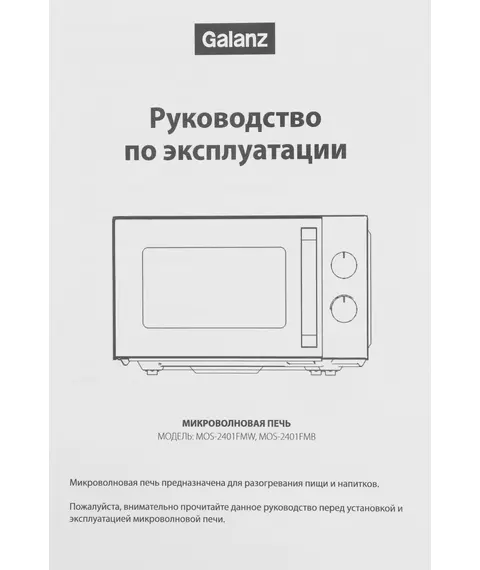 Микроволновая печь Galanz MOS-2401FMW 20л. 800Вт белый [132401]
