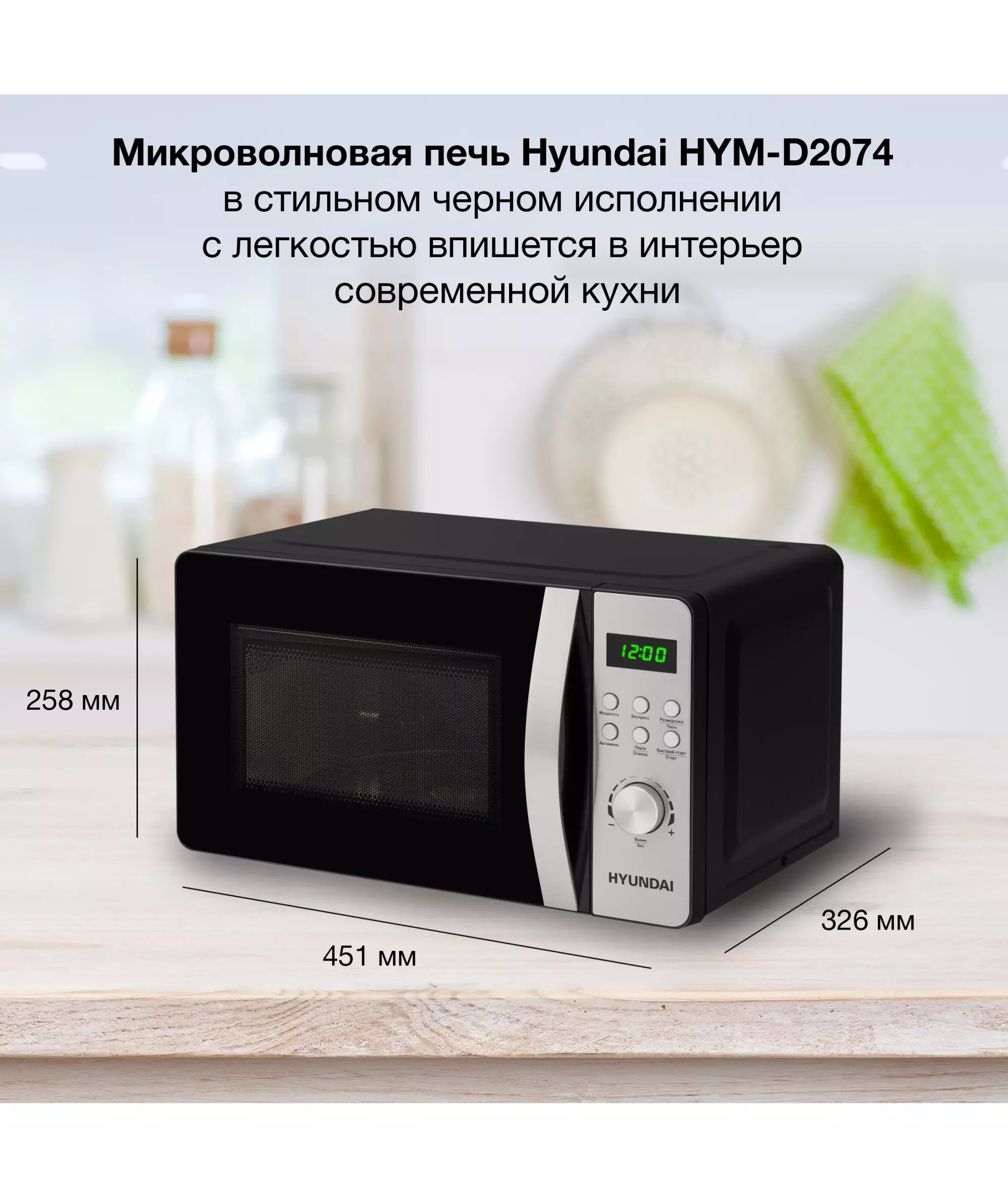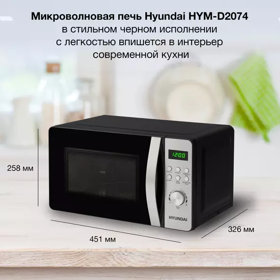 Микроволновая печь Hyundai HYM-D2074 20л. 700Вт черный/серебристый