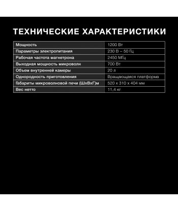 | Мощность микроволн | 700 Вт |