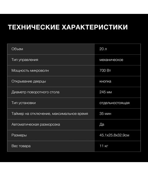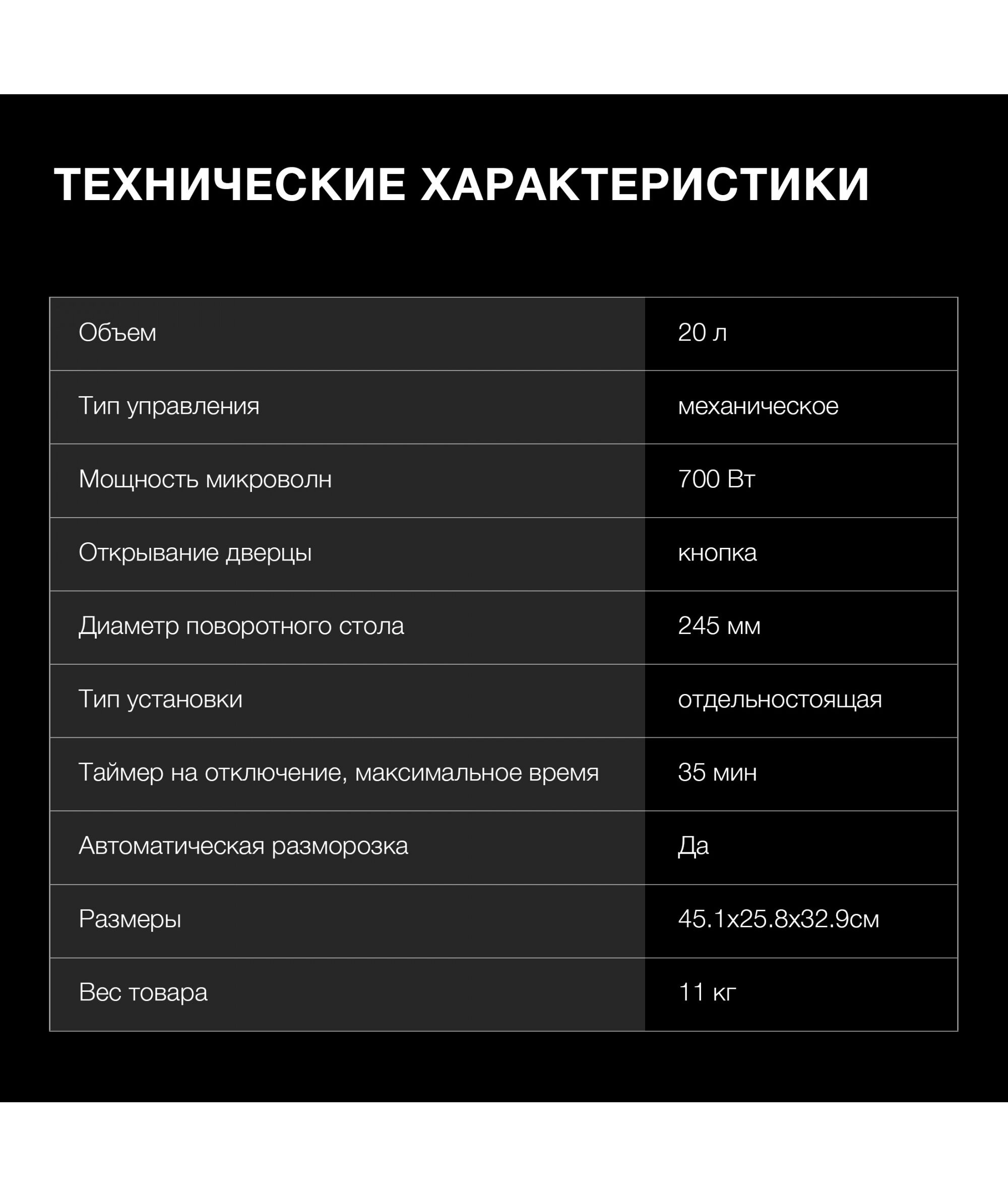 Микроволновая Печь Hyundai HYM-M2010 20л. 700Вт черный