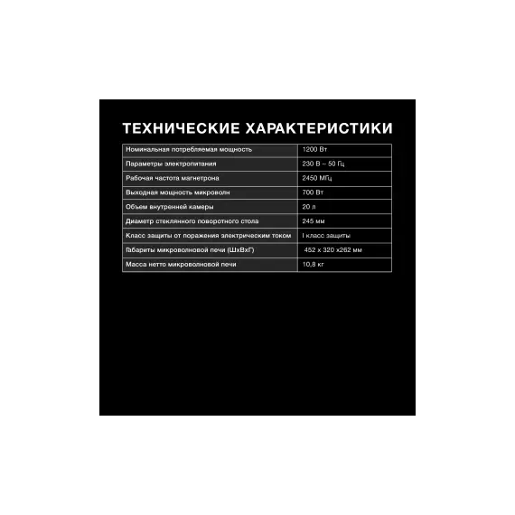 | Мощность микроволн | 700 Вт |