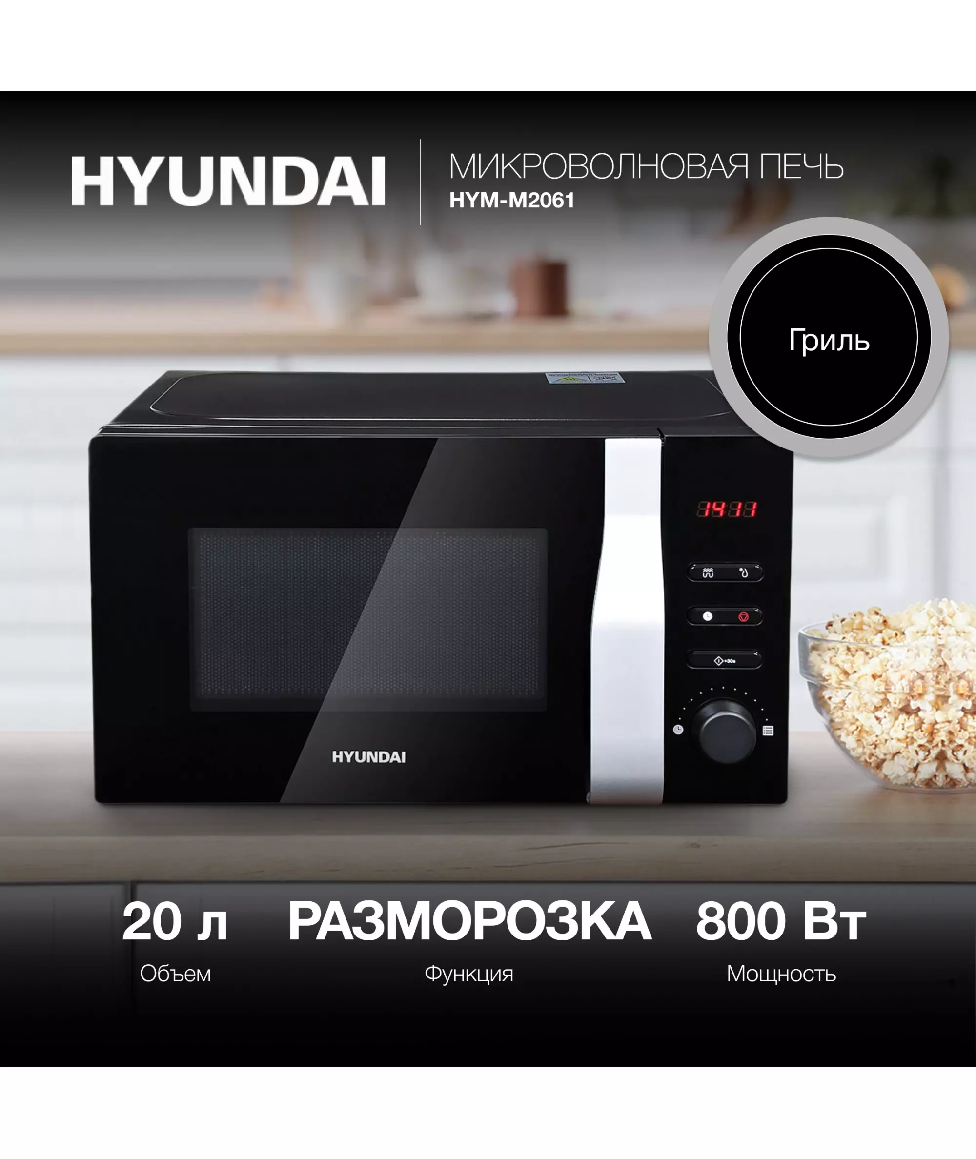 Микроволновая печь Hyundai HYM-M2061 20л. 700Вт черный