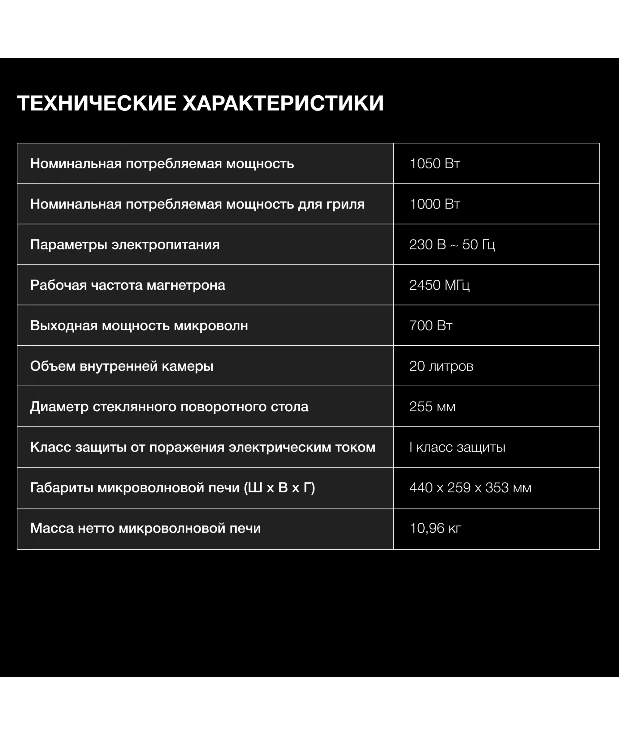 | Мощность микроволн | 700 Вт |