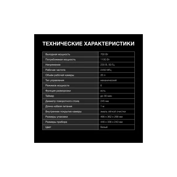 | Мощность микроволн | 700 Вт |