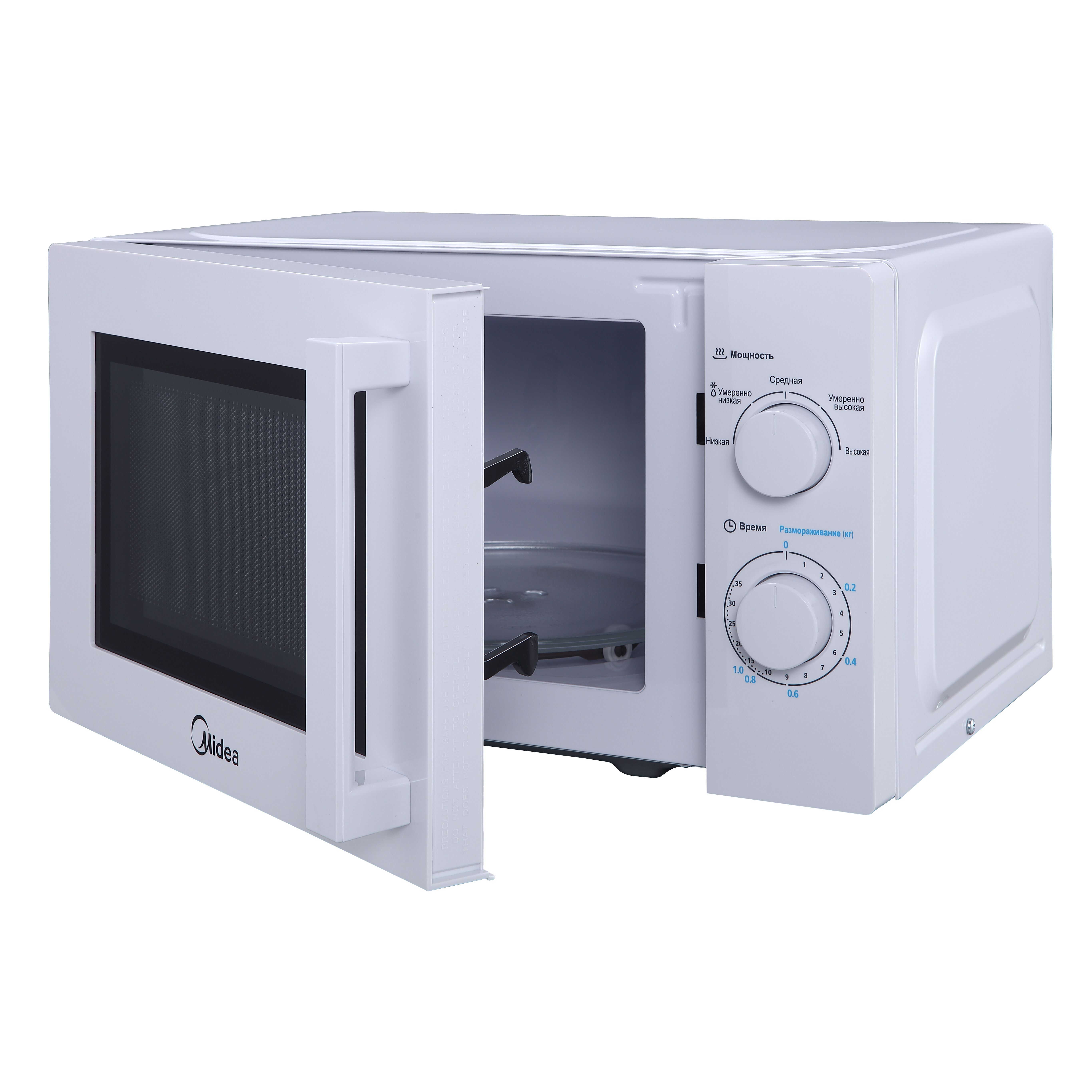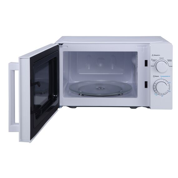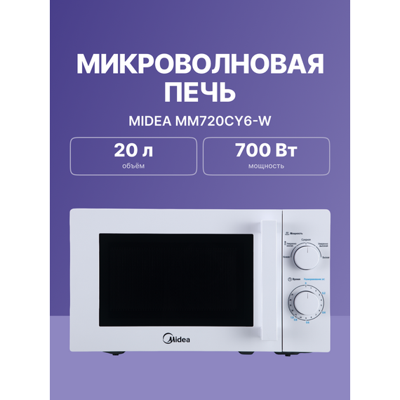 Отдельностоящая микроволновая печь Midea MM720CY6-W 20 л, механическое управление, таймер, 5 уровней мощности, подсветка, размораживание, поворотный стол, цвет белый