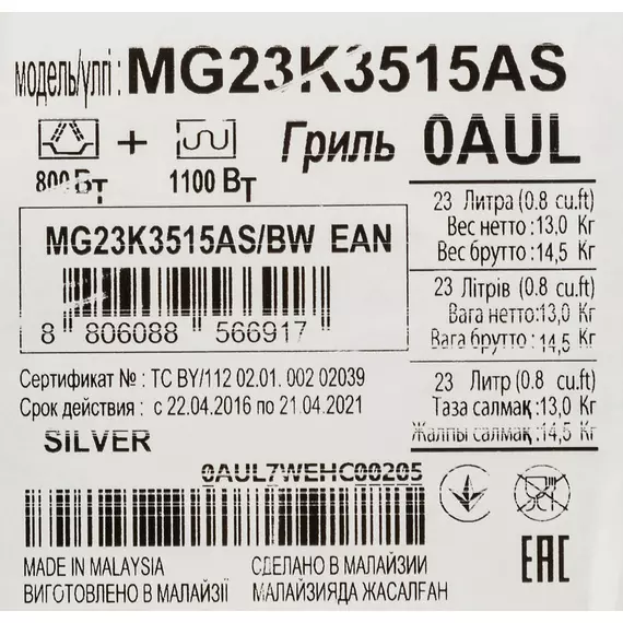 Описание Samsung MG23K3515AS/BW
