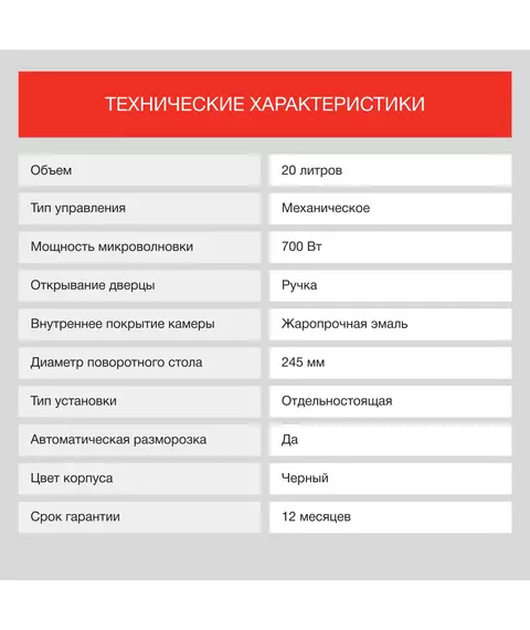 Микроволновая печь STARWIND SMW2320 20л. 700Вт черный