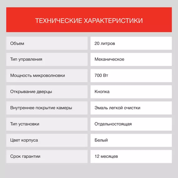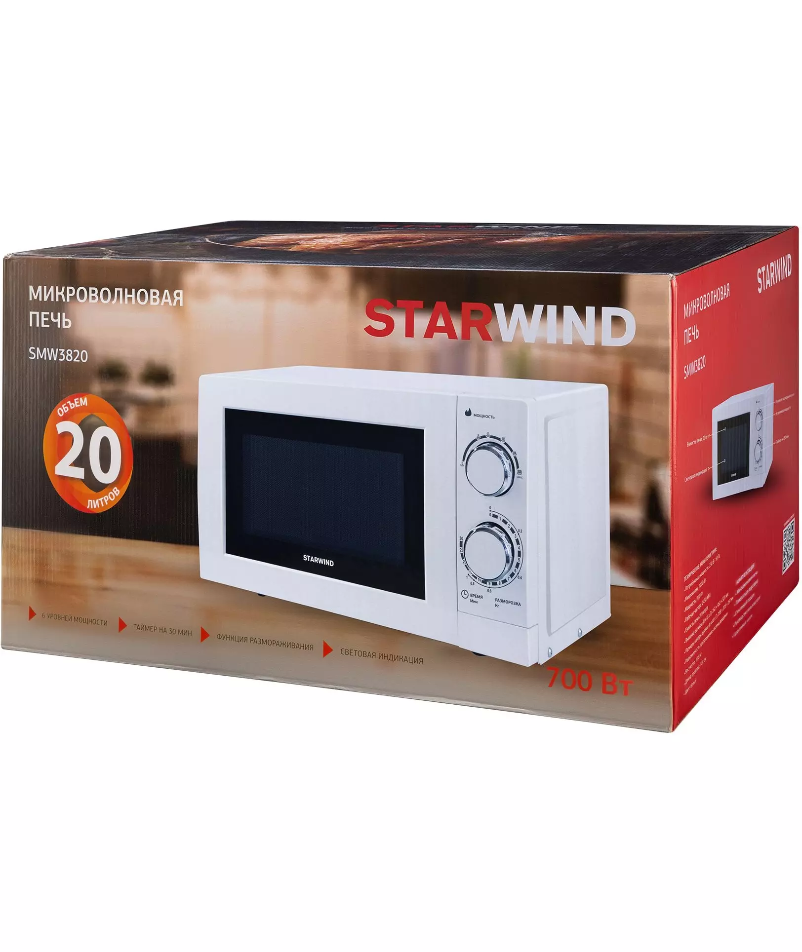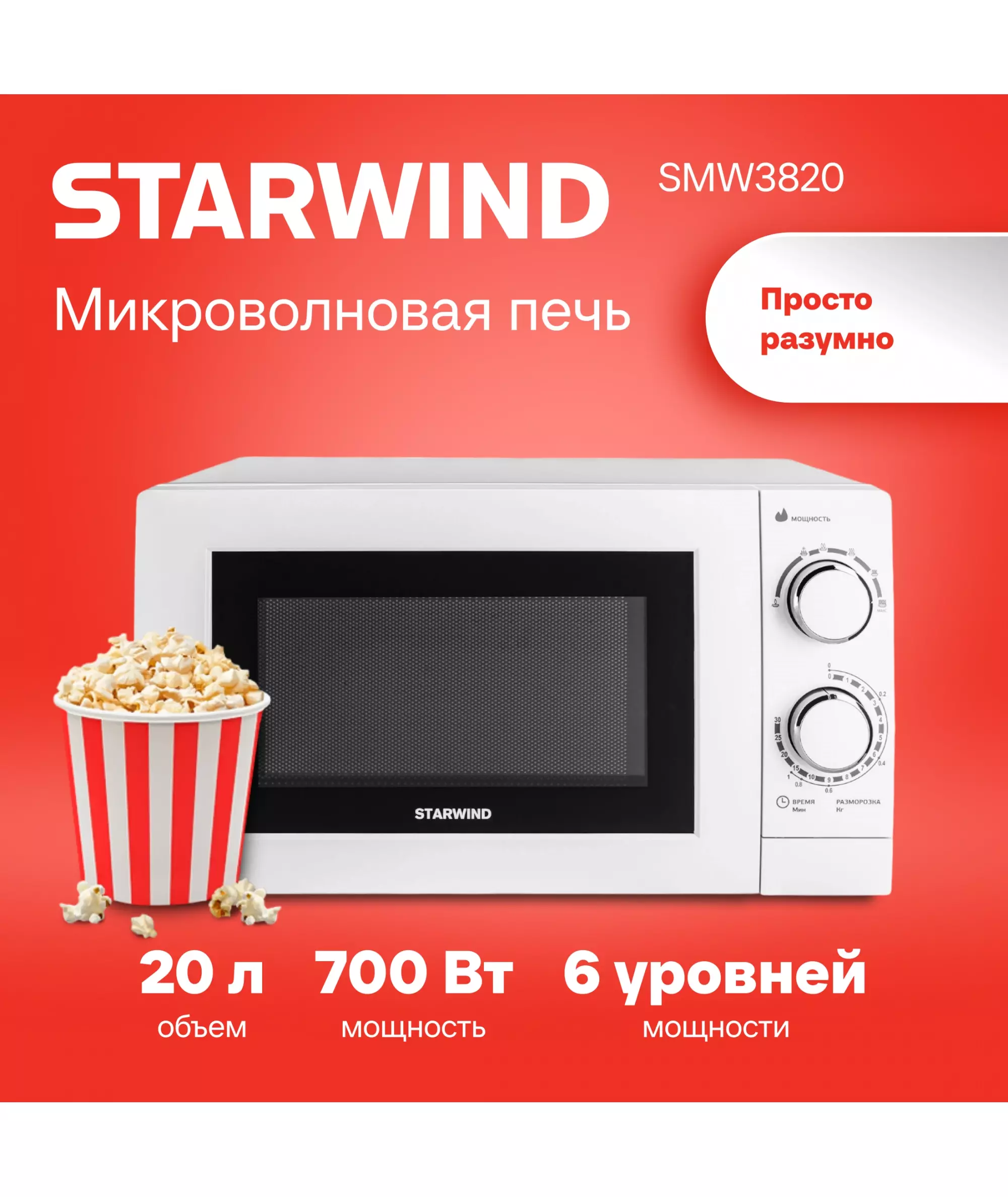 Микроволновая печь STARWIND SMW3820 20л. 700Вт белый