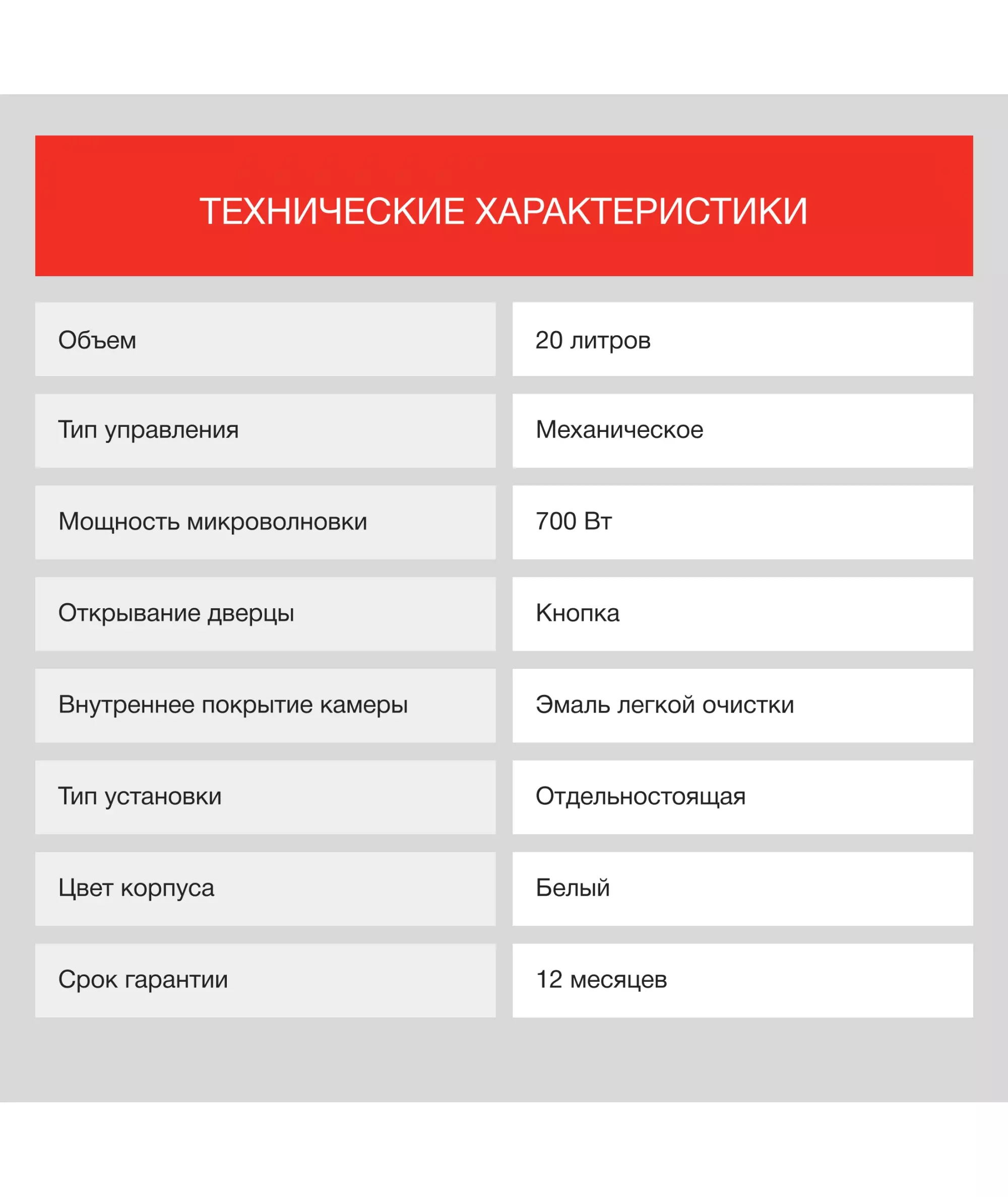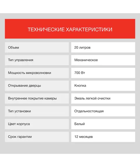 | Мощность микроволн | 700 Вт |
