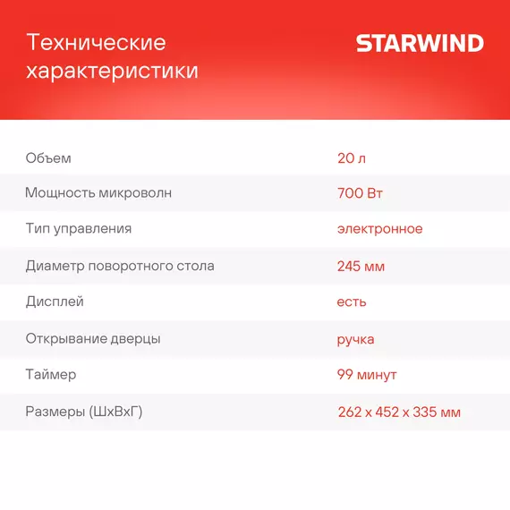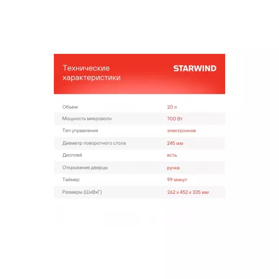 Микроволновая печь STARWIND SMW4420 20л. 700Вт черный
