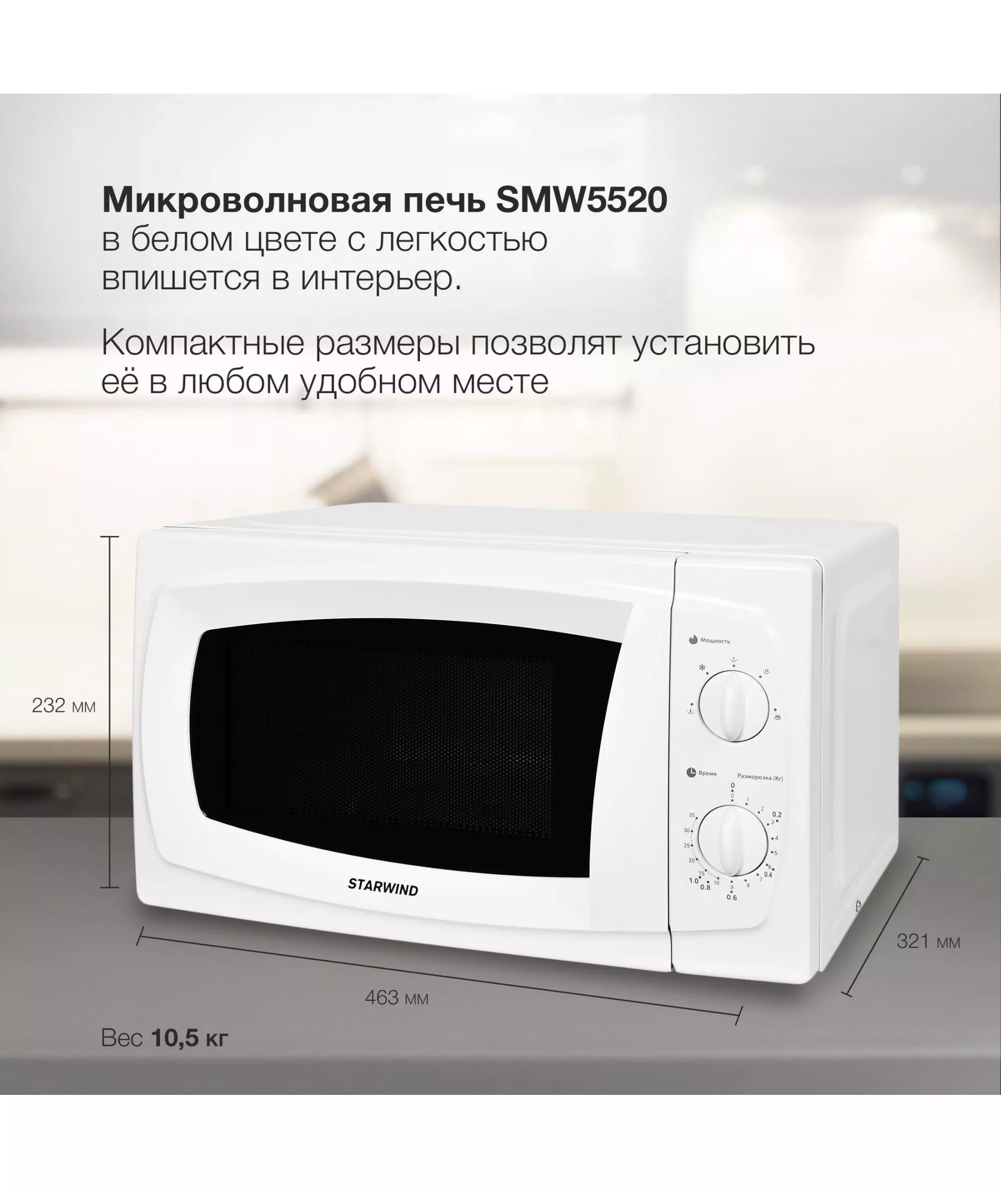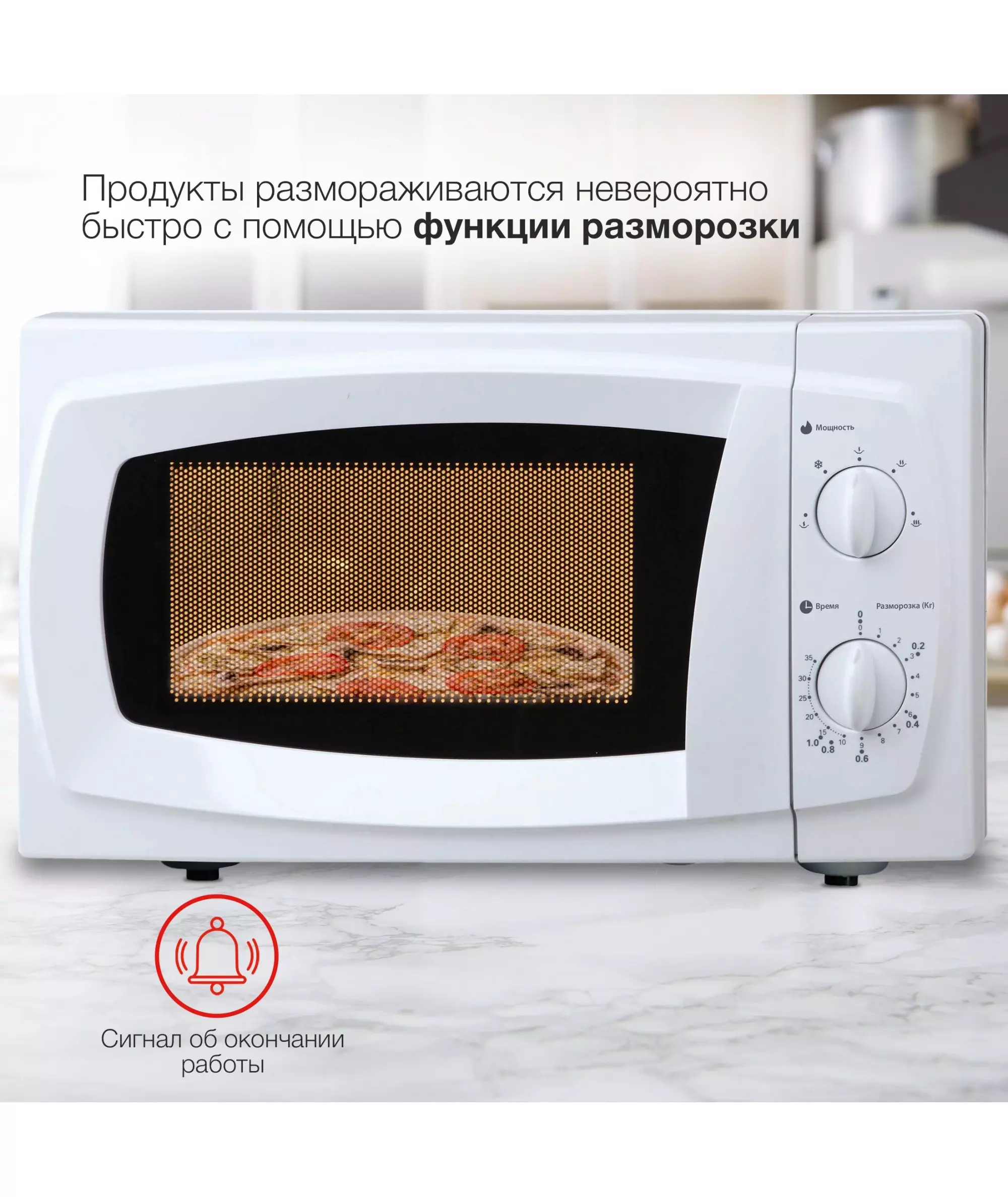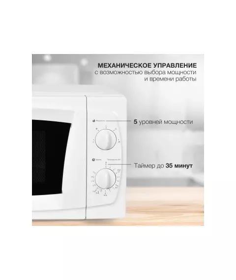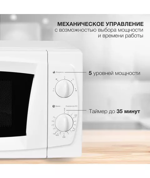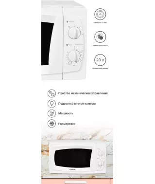 | Особенности | 5 уровней мощности, таймер на 35 минут, панель со шкалой разморозки по весу продукта и времени. |