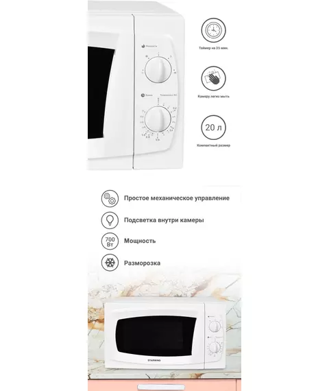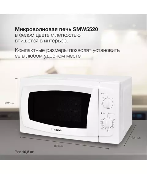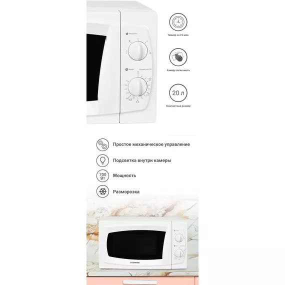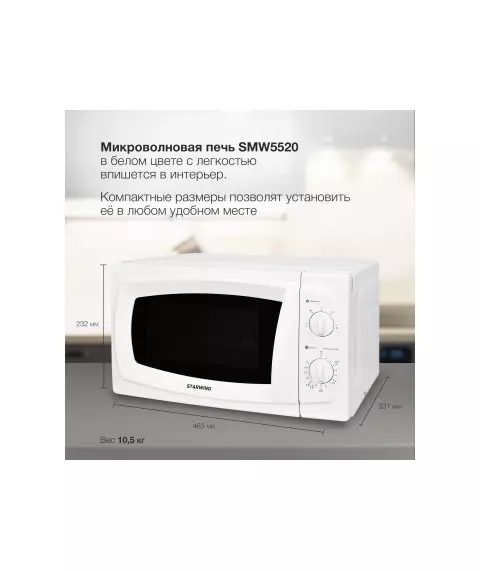 Микроволновая печь STARWIND SWM5520 20л. 700Вт белый