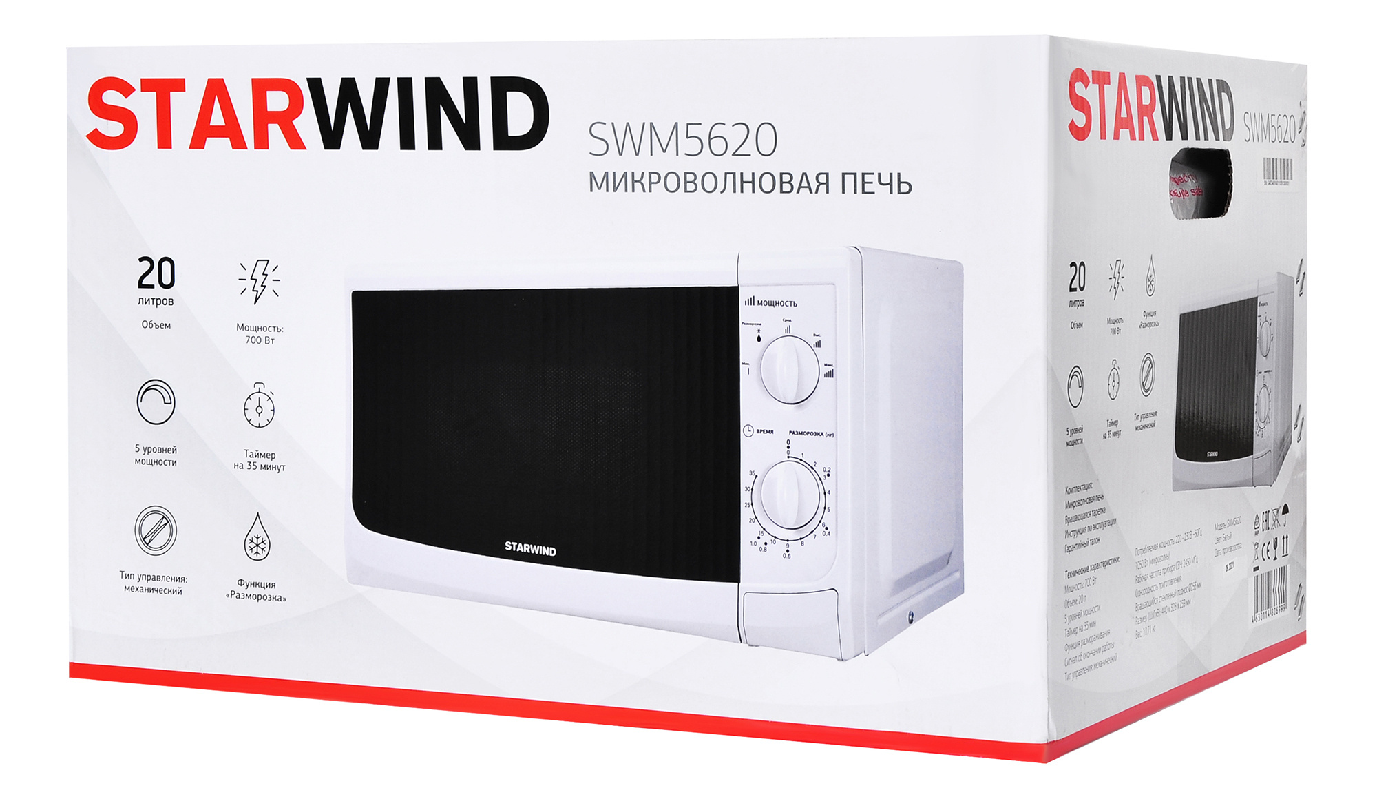 Микроволновая печь STARWIND SWM5620 20л. 700Вт белый