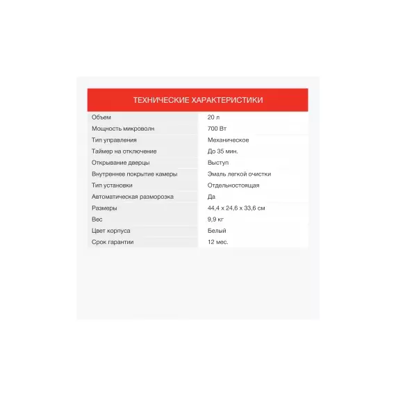 | Мощность микроволн | 700 Вт |