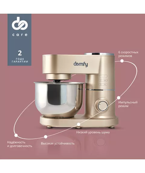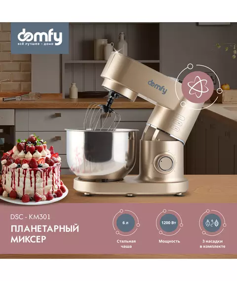 Миксер планетарный Domfy DSC-KM301 1200Вт золотистый