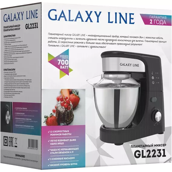 Миксер планетарный Galaxy Line GL 2231 700Вт черный [ГЛ2231ЛЧЕРН]