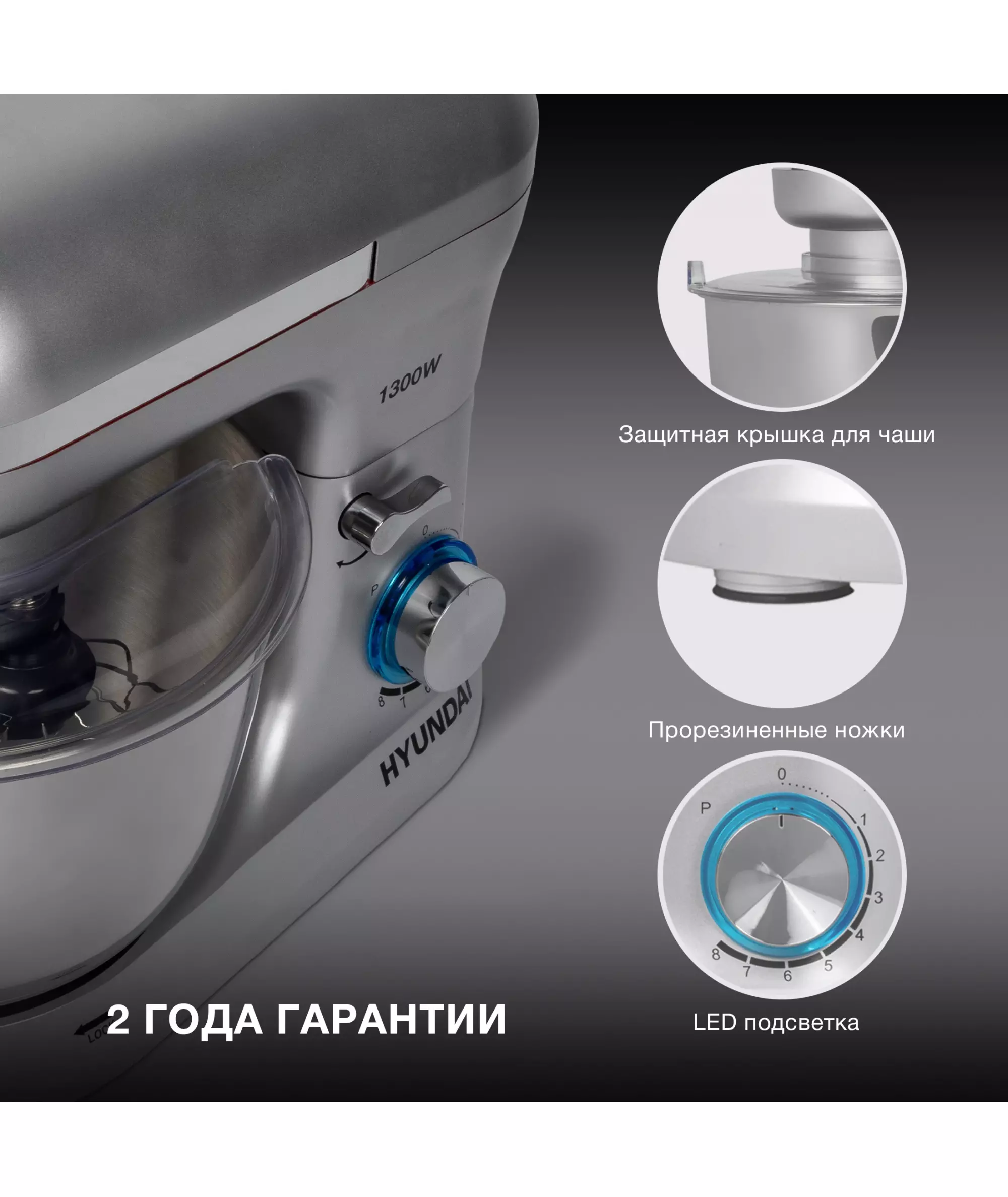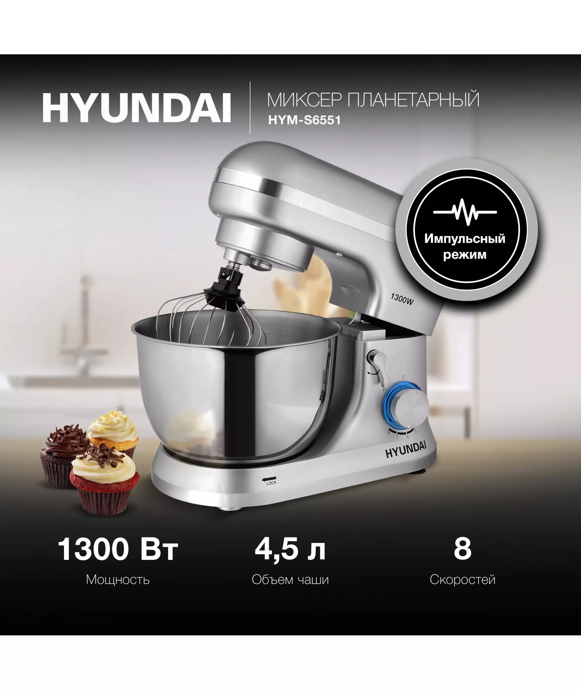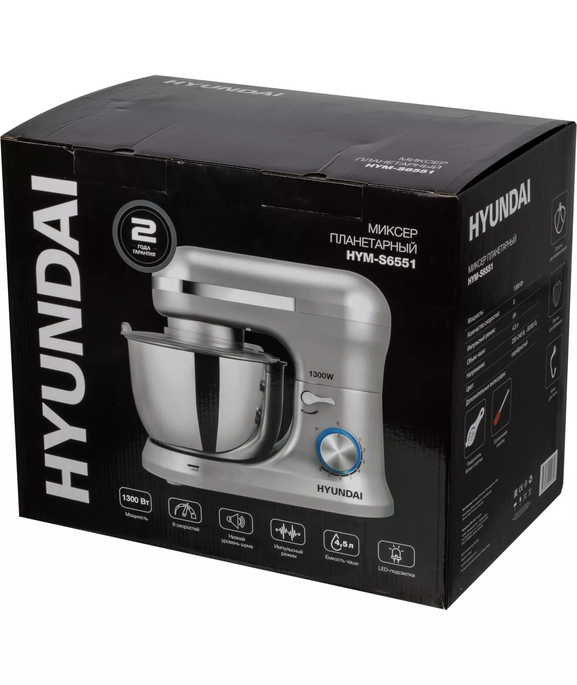 Миксер планетарный Hyundai HYM-S6551 1300Вт серебристый