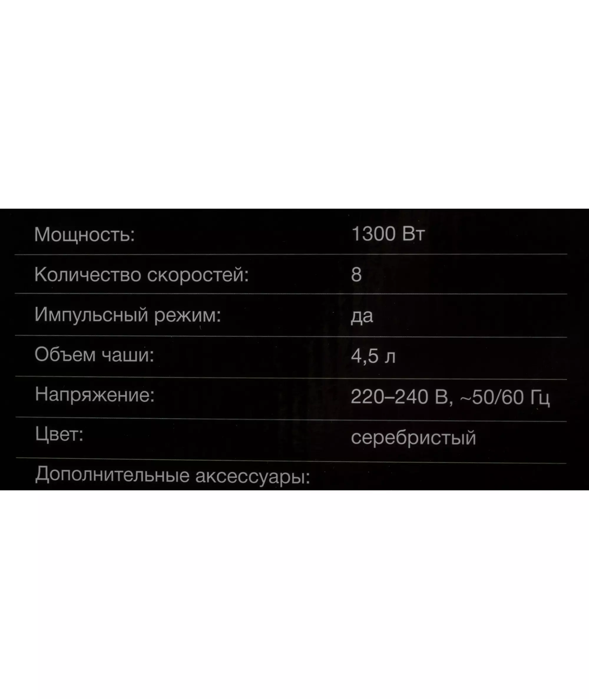 | Цвет миксера | серебристый |