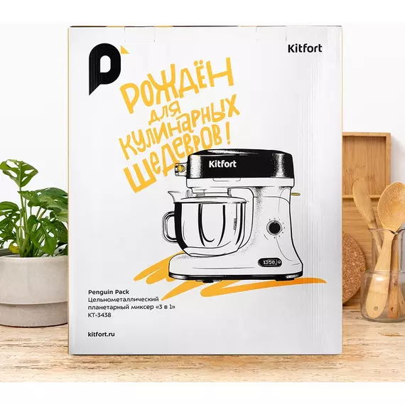 Миксер планетарный Kitfort КТ-3438 1600Вт белый/черный