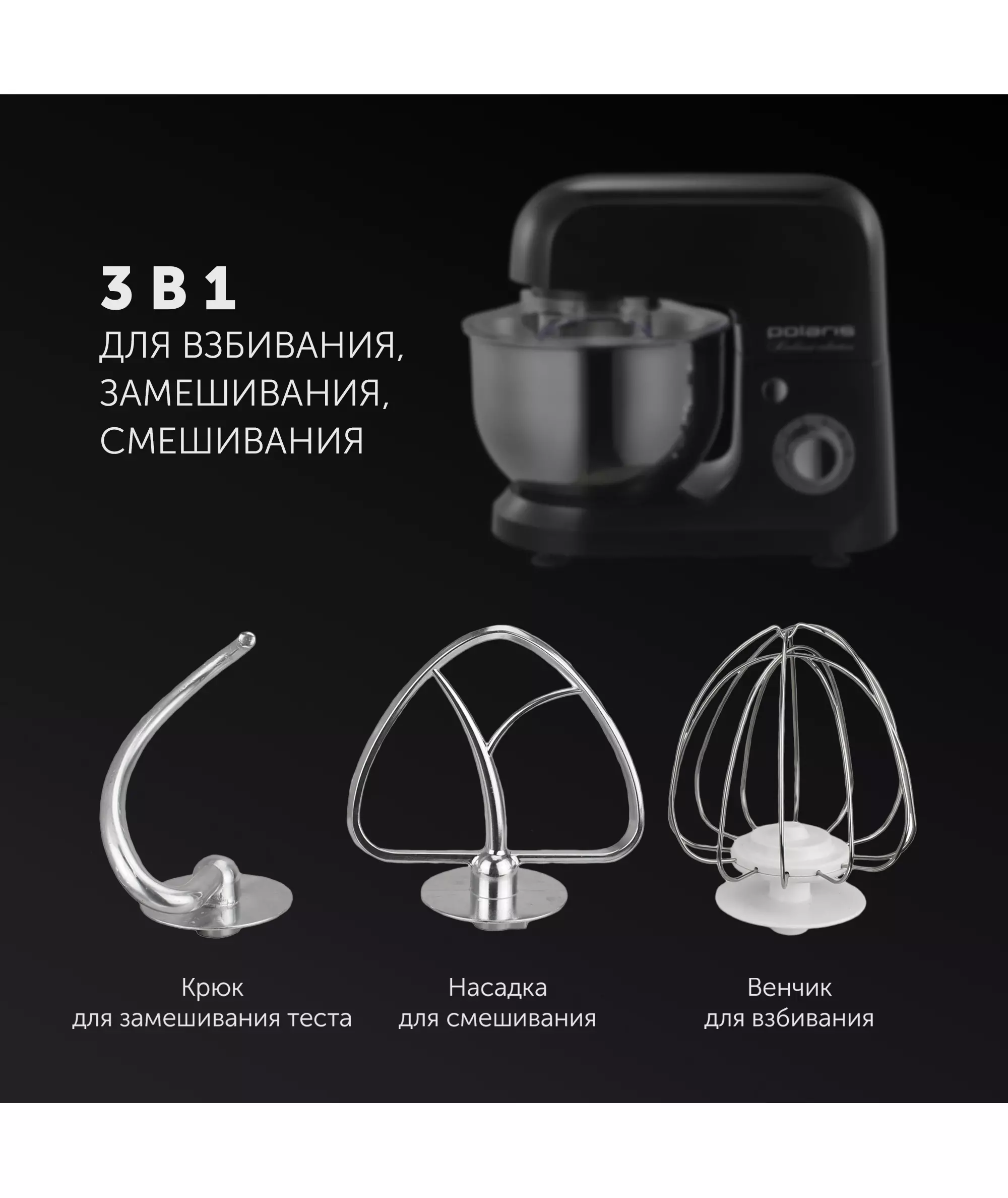 Миксер Polaris PKM 1002 планетарный 1000Вт черный