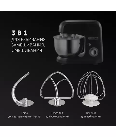 PROGEAR INSIDE надёжная конструкция со стальной шестернёй. Технология PROtect+ защита двигателя от перегрева. Чаша из нержавеющей стали. 3 в 1: Для Взбивания, Замешивания, Смешивания.