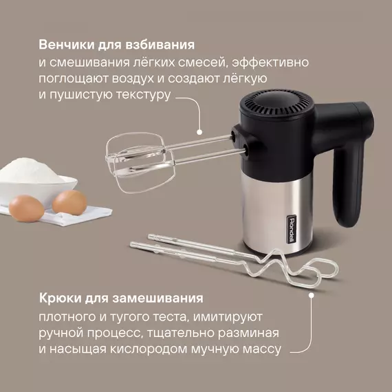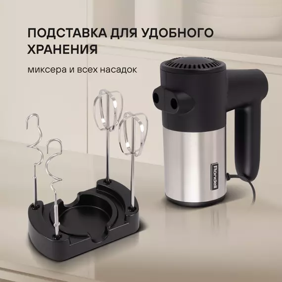 Миксер ручной Rondell RDE-1354 800Вт черный/серебристый