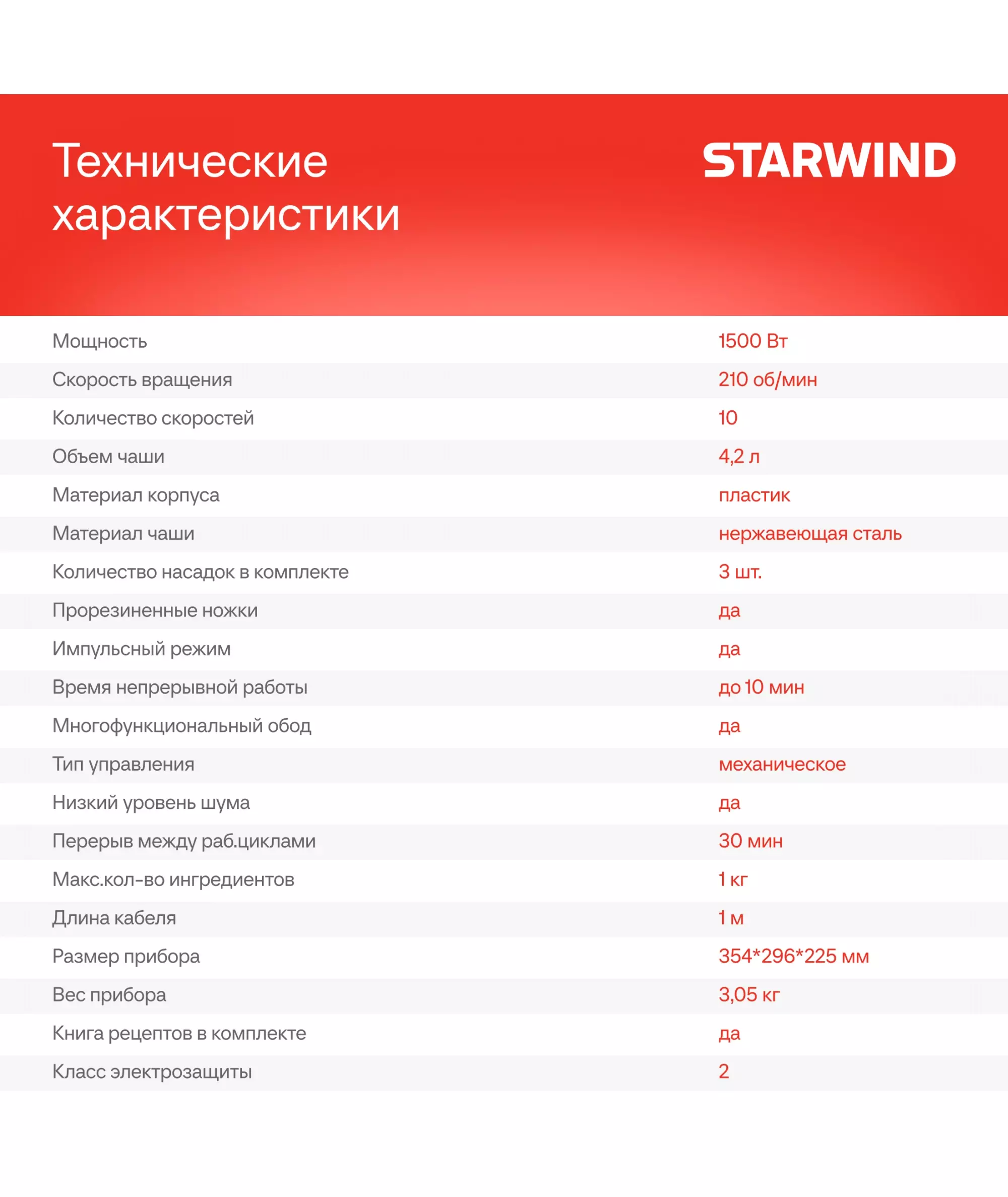 | Объем чаши | 4.2 л |