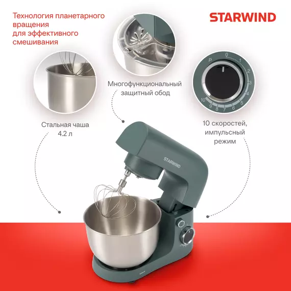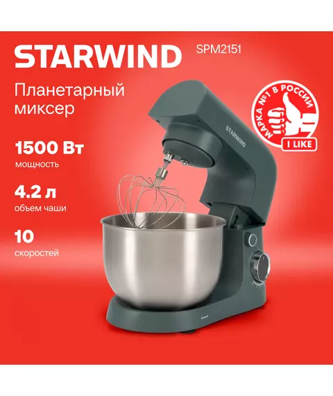 Миксер планетарный STARWIND SPM2151 1500Вт графит