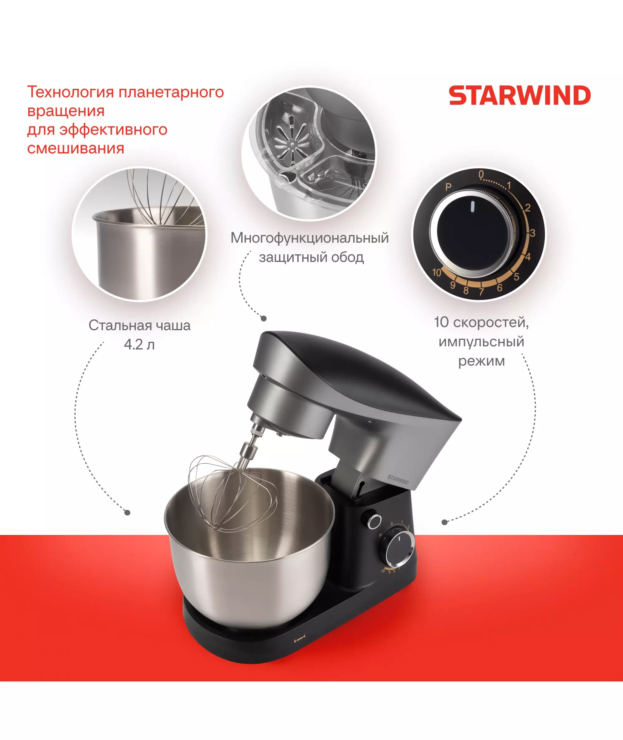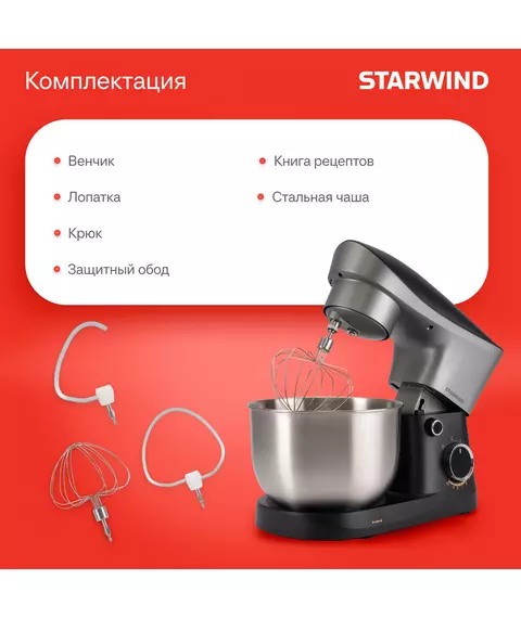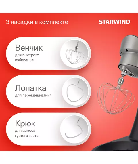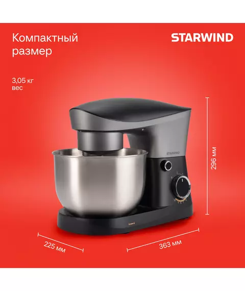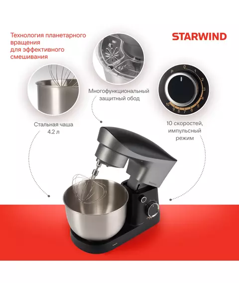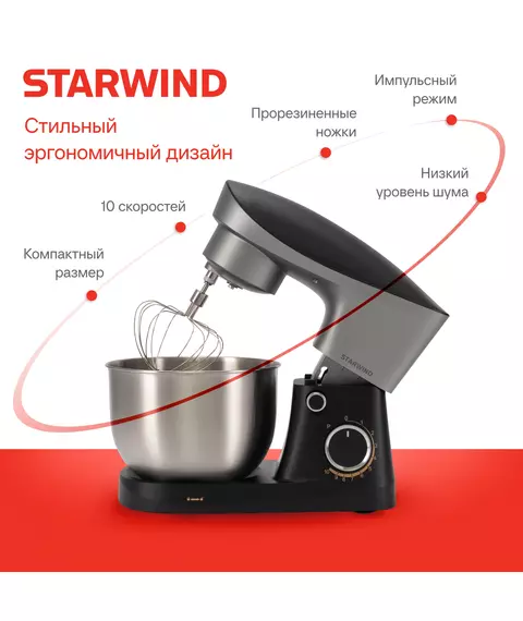 Миксер планетарный STARWIND SPM2251 1500Вт черный/серебристый
