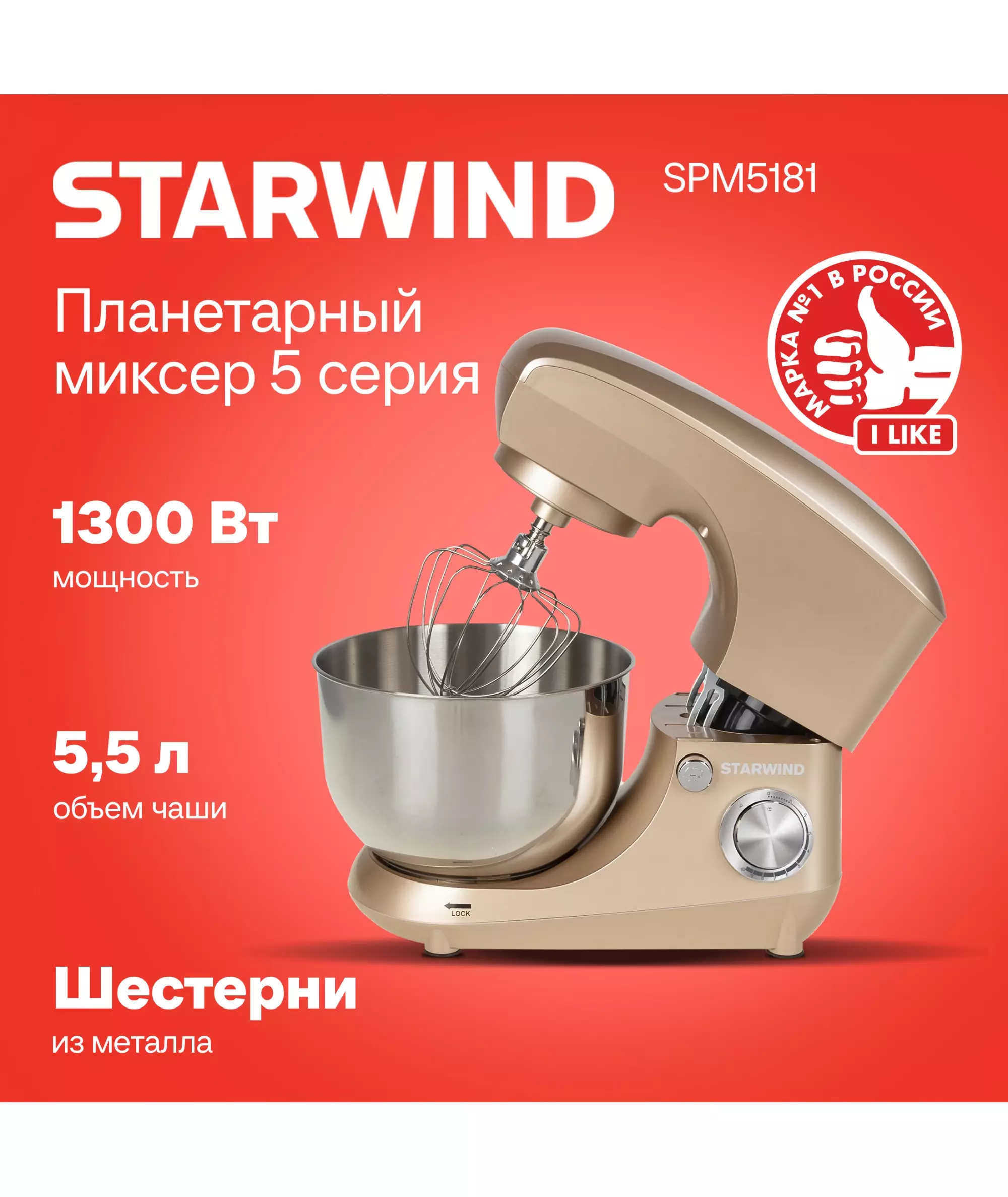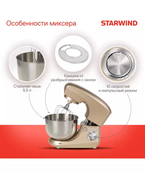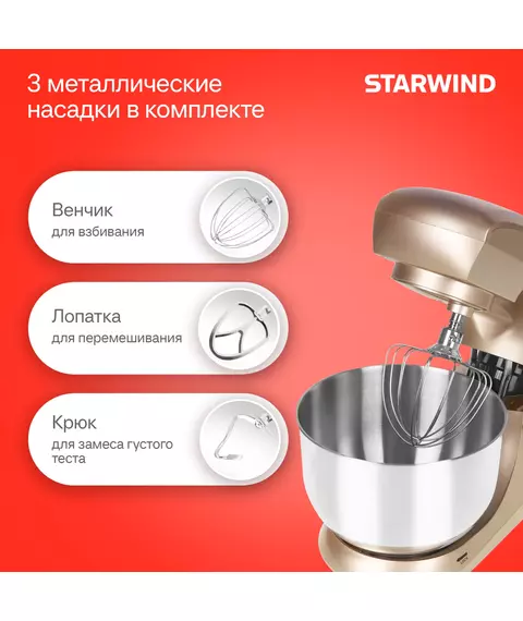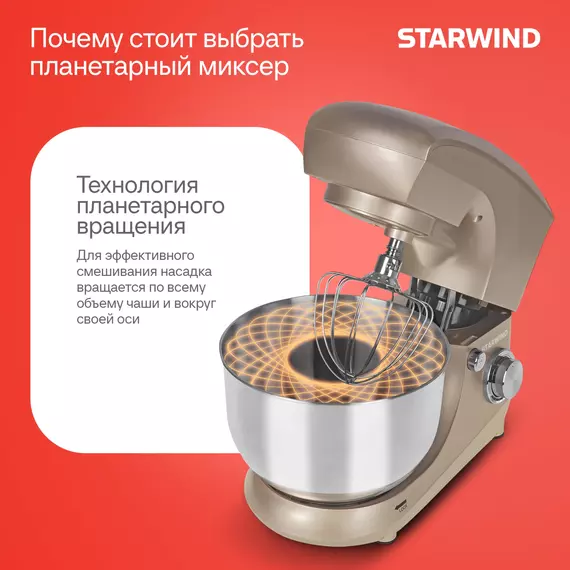 Миксер планетарный STARWIND SPM5181 1300Вт золотистый