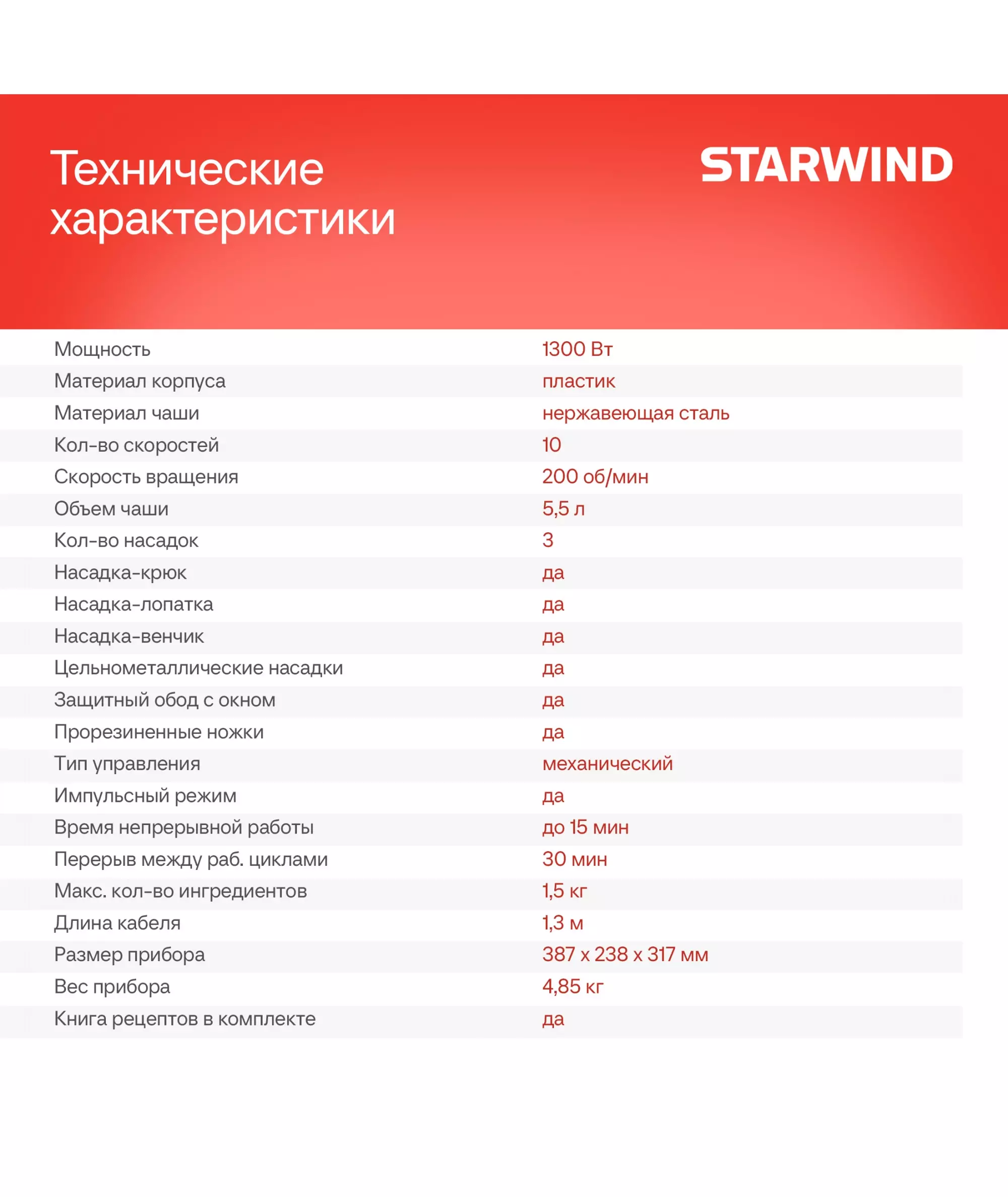 | Длина шнура | 1.3 м |