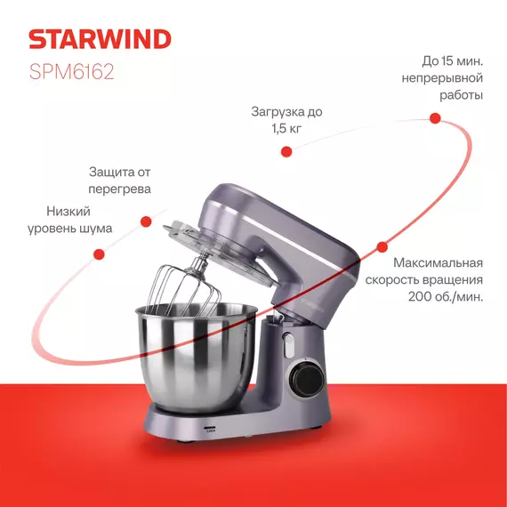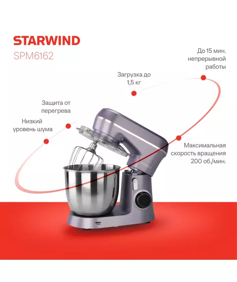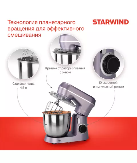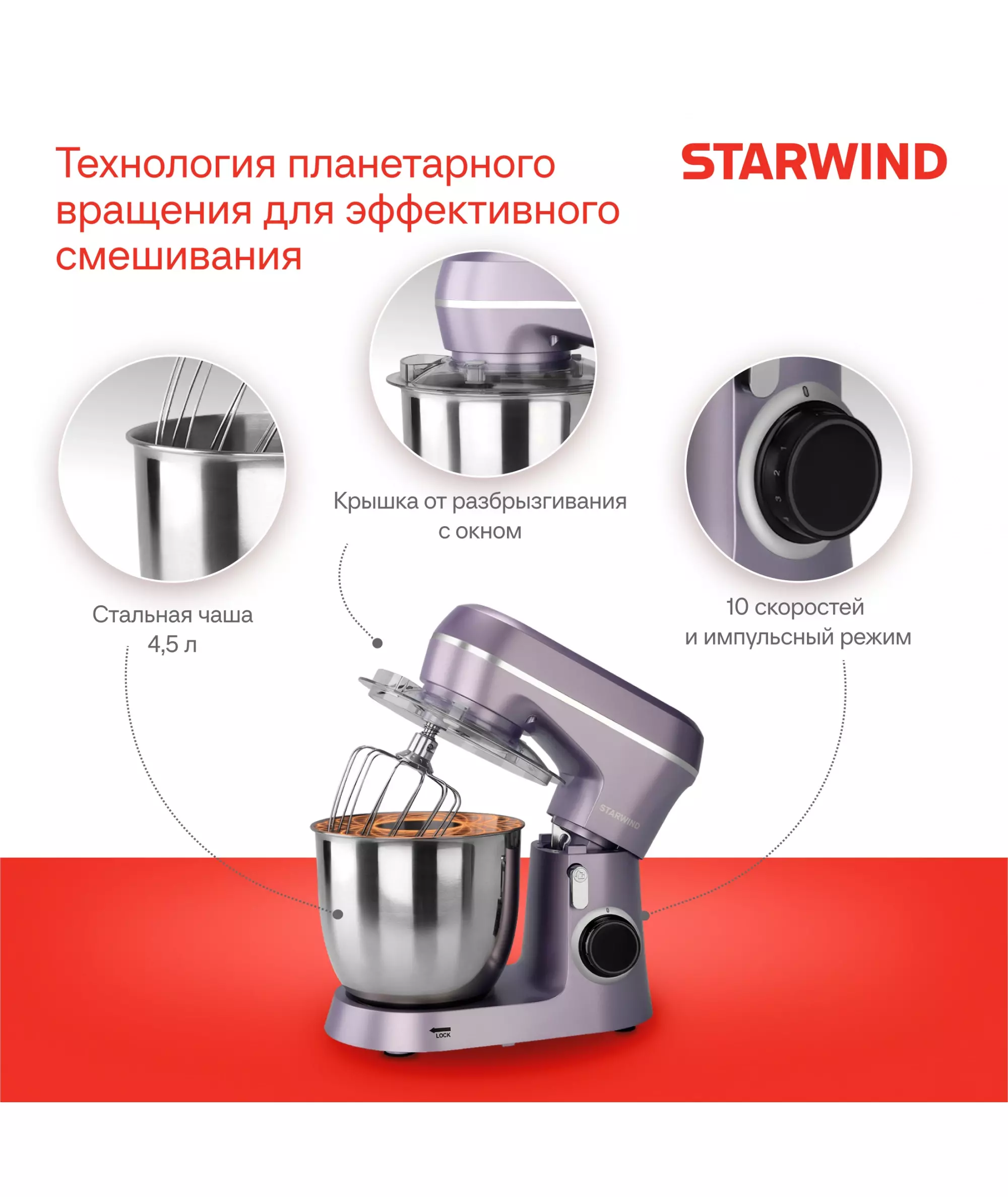 Миксер планетарный STARWIND SPM6162 1300Вт лавандовый