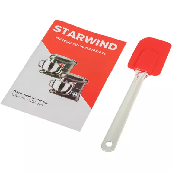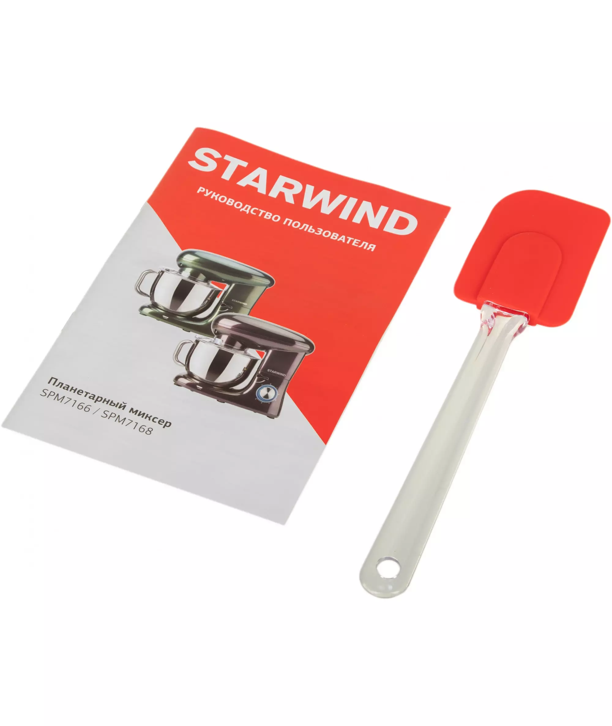 | Комплектация | Миксер; чаша; защитная крышка; насадка-венчик; насадка-крюк; насадка-лопатка; кулинарная силиконовая лопатка; инструкция с гарантийным талоном; книга рецептов |