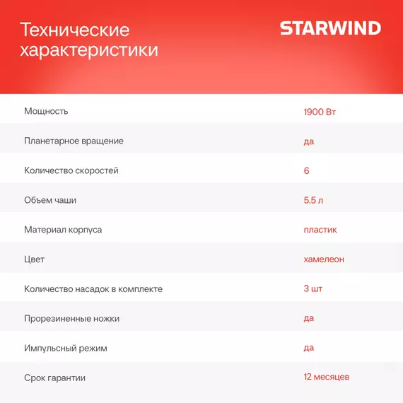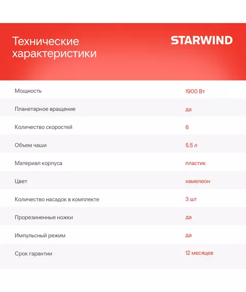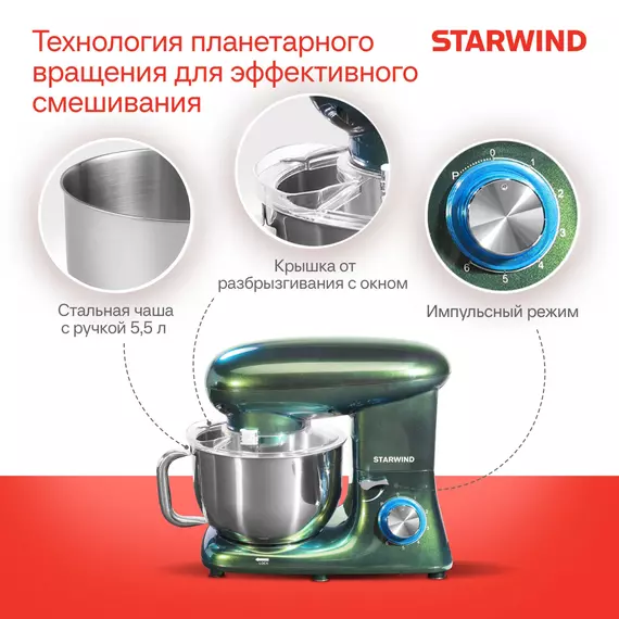 Миксер планетарный STARWIND SPM7166 1900Вт хамелеон
