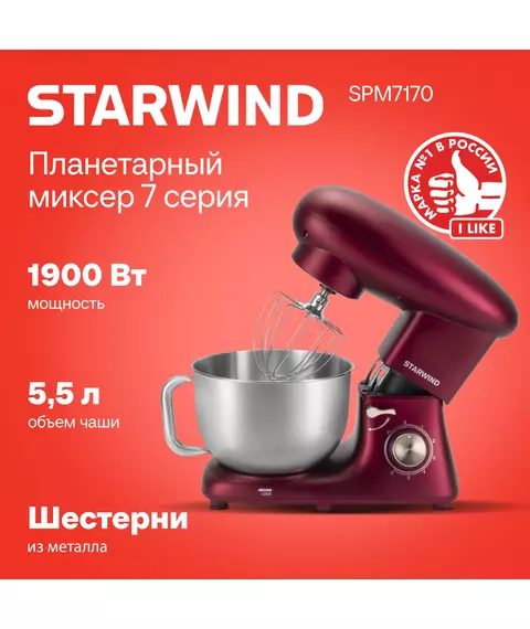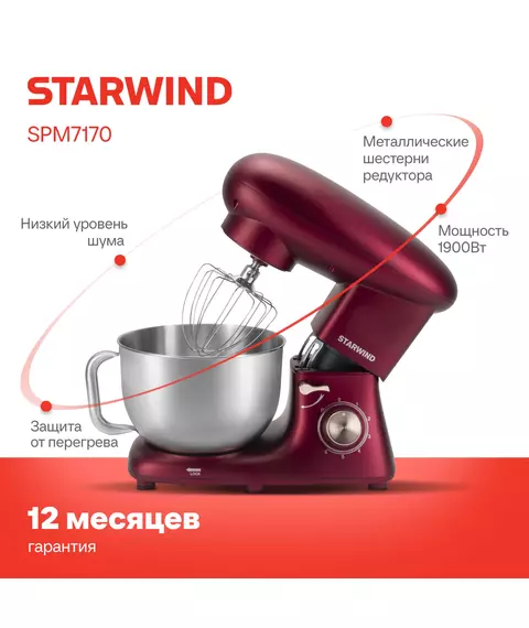 Миксер планетарный STARWIND SPM7170 1900Вт гранатовый
