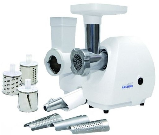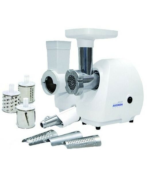- Дополнительные насадки: 3 шинковки-овощерезки, соковыжималка, решетка с отверстиями 5 мм, решетка с овальными отверстиями