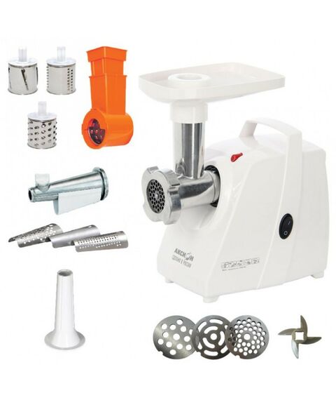 - Электрическая мясорубка М34 «Аксион» - одна из лучших моделей по сочетанию параметров «цена-качество». Три решетки с отверстиями разного диаметра позволят получить фарш нужной консистенции для приготовления самых разных блюд.