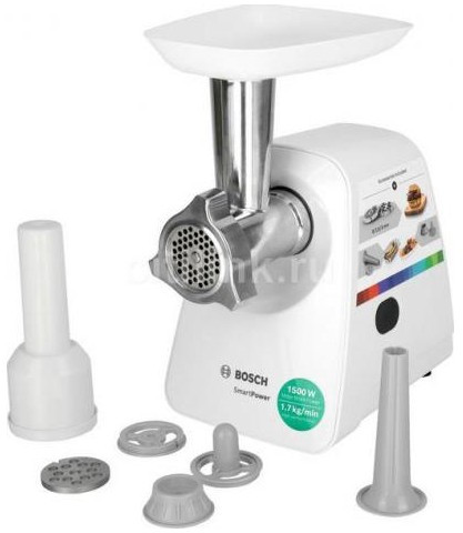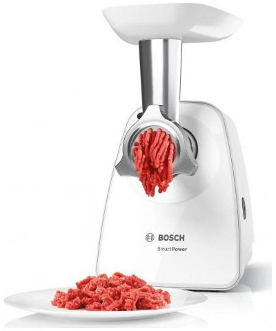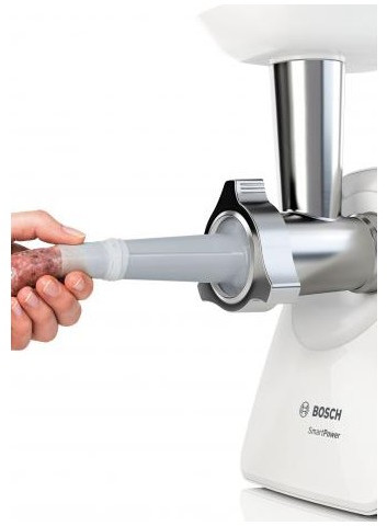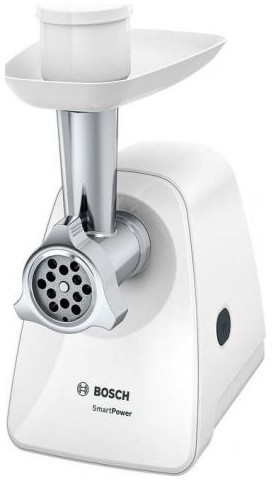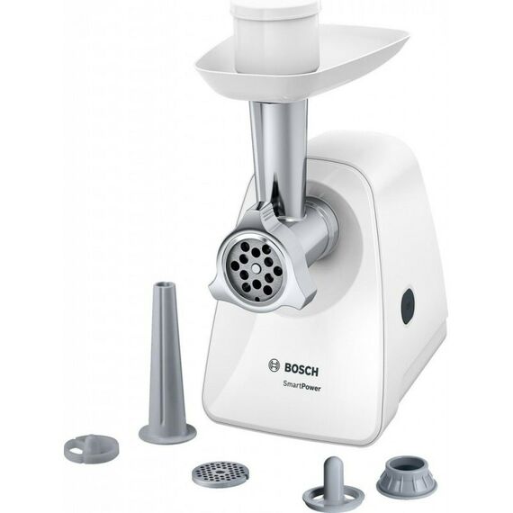 Мясорубка BOSCH MFW2520W SmartPower, 350/1500 Вт, 2 форм диска, насадка для колбасок и кеббе