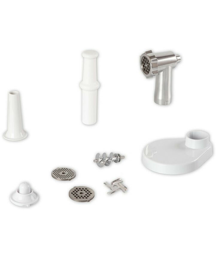- Мясорубка оснащена большим приемным раструбом. Высококачественные металлические детали не позволяют продуктам окисляться в процессе переработки, а также гарантируют надежность и долговечность устройства.