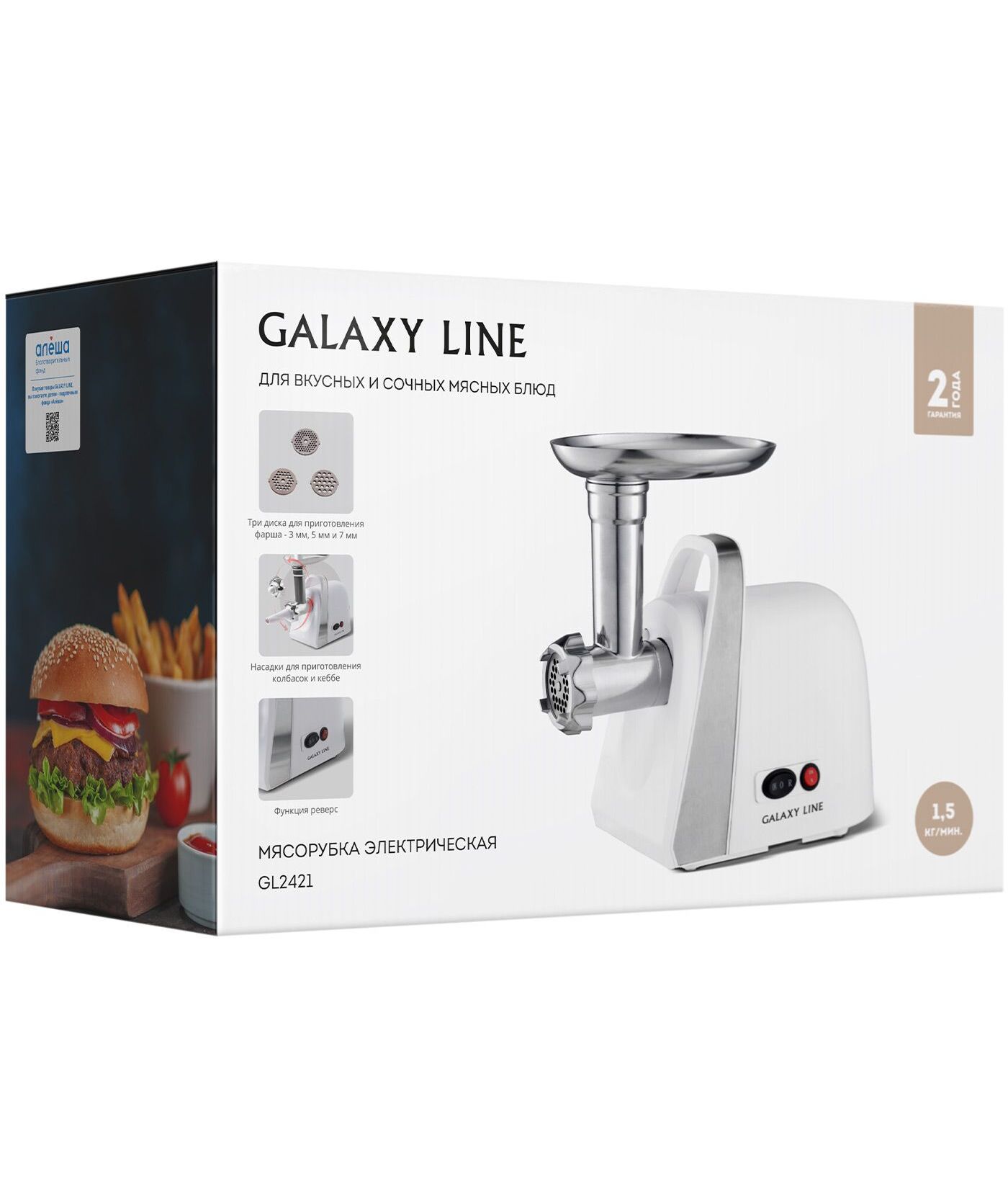Мясорубка Galaxy Line GL 2421 1600Вт белый [ГЛ2421Л]