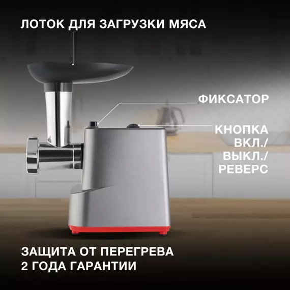 | Особенности | диски с отверстиями диаметром 5 мм и 7 мм; большая камера шинковки + 3 насадки-шинковки |