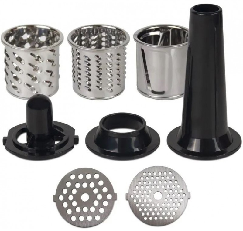 - Насадки приборов для измельчения продуктов: Для колбас/сосисок, Для фарша, Кеббе, Мясорубка, Нож-измельчитель