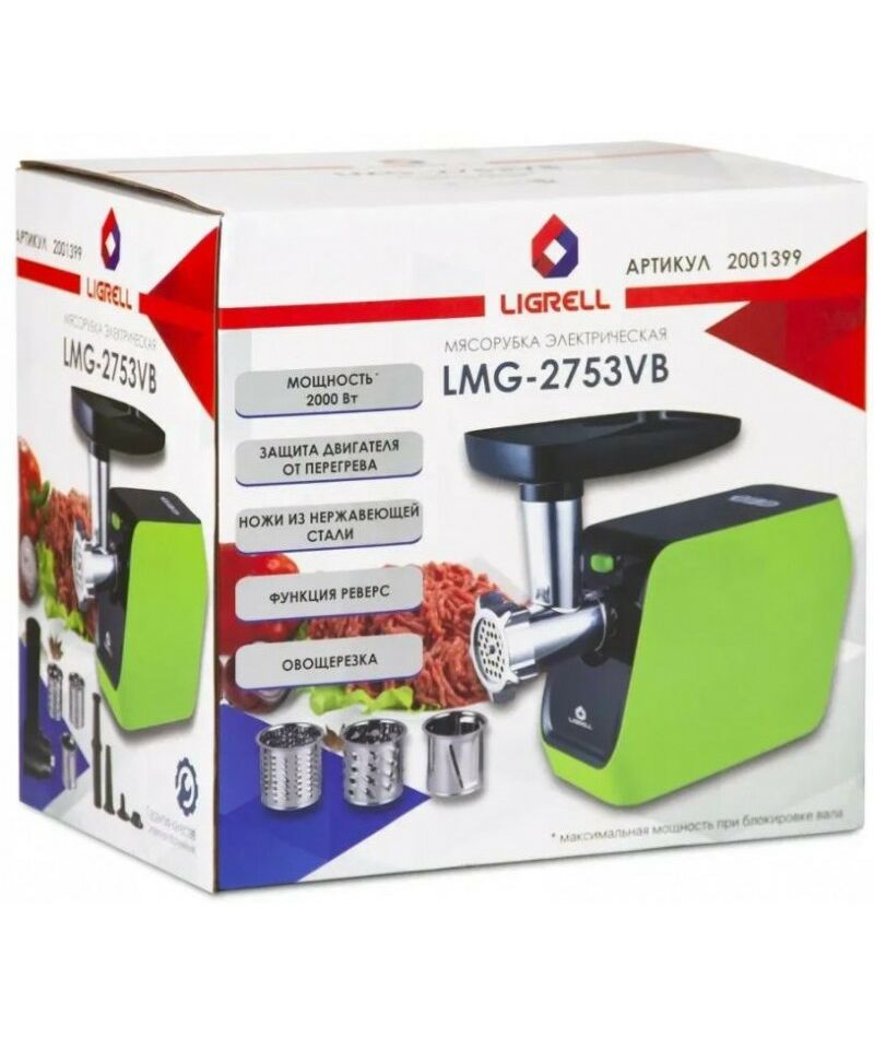 Мясорубка LIGRELL LMG-2753VB 2000 Вт, реверс, овощерезка